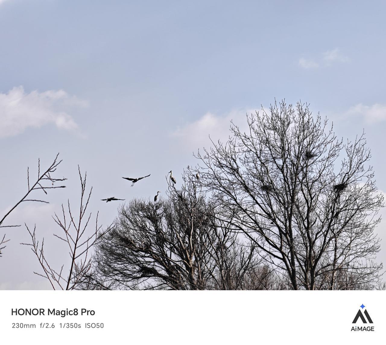 太喜欢用荣耀Magic8 Pro拍鸟了,这些候鸟从很远的地方来到我的家乡过冬,即便它们站在高高的树枝上,拍下那一刻也还是很能看。