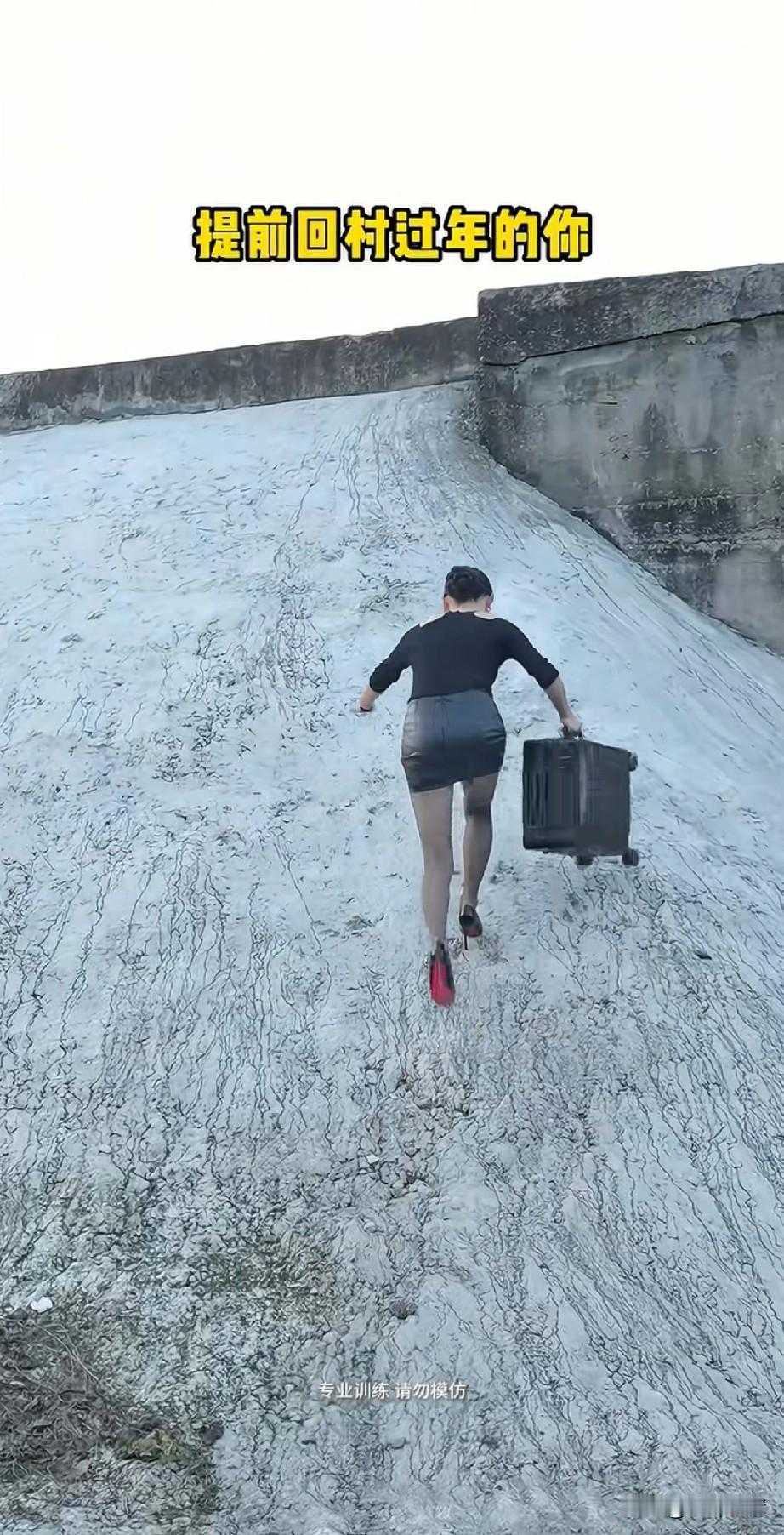 女子拉着行李箱提前回家过年,堪比谍战剧,黑色短袖加黑色皮裤,以及黑色丝袜,全身都是黑色,还真像性感女特工! 她远远的就看到了村口的大爷大妈,因为害怕大爷大妈的盘问,于是她偷偷的走了田埂下方的路,全程低头! 突然他看到了路上有,大爷骑车经过,她迅速躲到了天坑的下面,等到大约通过后,她才继续向家的方向奔袭, 随后她快速穿过一片绿色的菜地,别看她穿着高跟儿鞋,行动不发是相当的快,关键是鞋跟儿居然没有陷在菜地里! 突然她又发现菜地旁边有大爷大妈经过,她又迅速躲进了附近的草丛里,整个过程都没有和大爷大妈相遇! 看着每次都到了危机关头,但最后都被她轻松躲过,主打一个不碰见村民,最后她瞅准空岛,快速冲过石头!肩膀上扛着她的行李箱! 别看黑色丝袜小姐姐身材这么瘦弱,但她扛着箱子飞奔的速度可不慢,真的很像一个受过特别训练的女特工, 看着她拉着箱子快速冲上一个水泥坡,离家的路越来越近了,马上就到家门口了,又看到有村民走了过来,她迅速躲进了家旁边的玉米杆堆里,等着村民走过后! 她迅速拨开玉米杆,从里面钻了出来,然后拉着箱子,快速进入家门,全程一气呵成,看着非常的精彩,不过为了不见到村民,还真是煞费苦心!这样回家提前过年,是不是太有难度了? 回家过年你怕回家过年吗 皮裤女 皮裤裙女 御姐皮裤穿搭 女皮裤穿搭