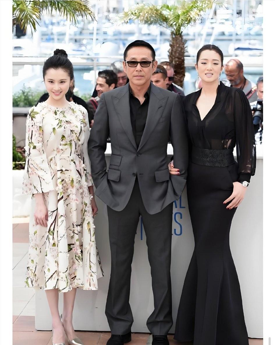 墨镜一戴。 陈道明往中间一站。 那股子儒雅劲,压得住场。 右边巩俐,身板笔直,是