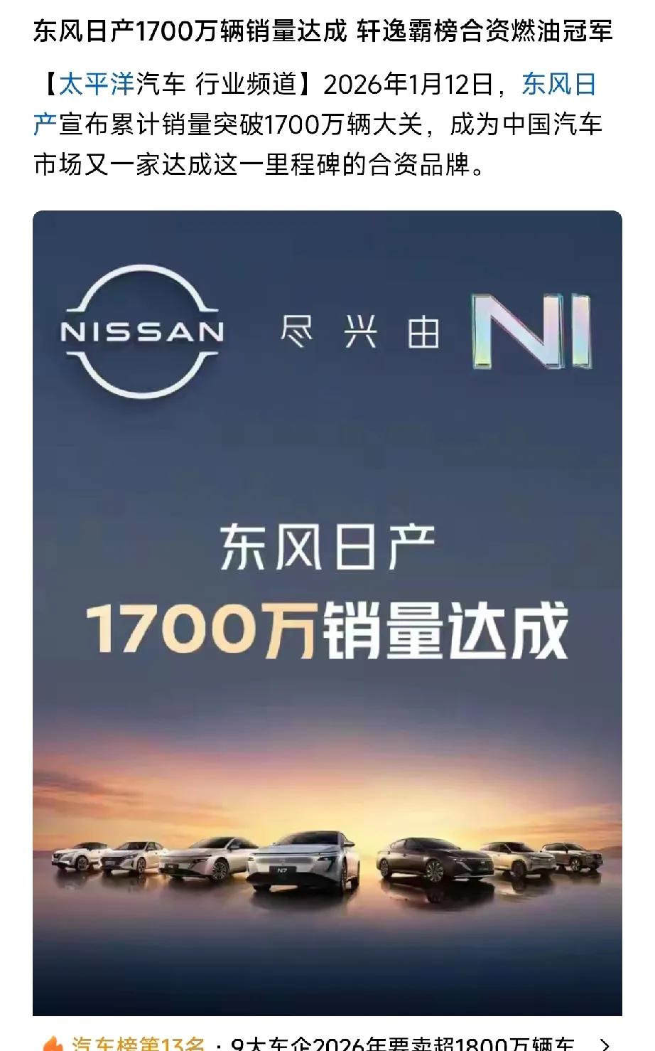 截至目前,东风日产累计用户规模已达1700万;2025年,终端销量突破60万辆。