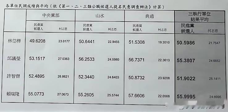 杨琼樱应该注意了!民进党邱议莹输给赖瑞隆仅0.6个百分点,但有人看到这三个民调机构的结果后,认为邱议莹输得有点儿冤。 因为两家民间民调机构中,邱议莹还略微高赖瑞隆一点儿,但民进党中央做的民调,赖瑞隆就比邱议莹高将近2℅。 这其中有没有猫腻?许多人都觉得有点儿,毕竟赖清德是希望赖瑞隆上去参选的。 所以杨琼樱应该注意了,到时候协调同意也算,还能落个好名声。如果比民调,一定看看有几家机构给做民调,看是不是公平合理,别被人家卖了,还在替人家数钱呢。