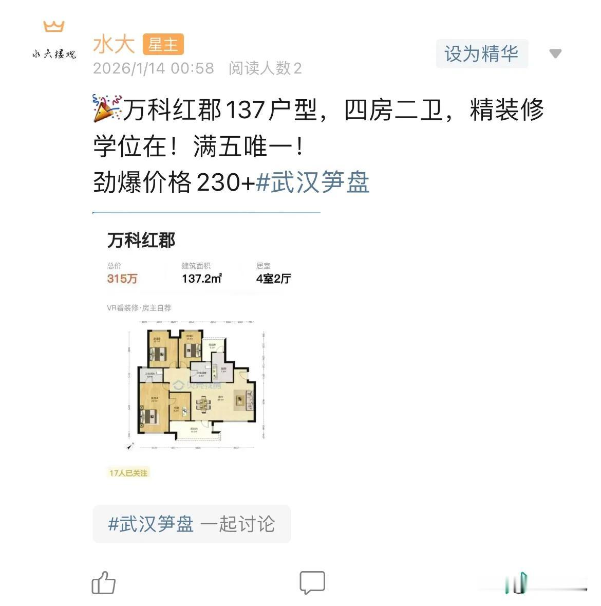 今日美居 万科红郡,到底是二小➕实验不行了,还是小区太老了?你们说说,为何金融港四小龙都不行了?尤其是万科城市花园,价格真的友好到了极点。 房价已经止跌回稳,各位不要错判形势,该买就要买,中国经济前景无限,中国房地产目前健康水平空前,具有极大的购买价值,有需要的,不要犹豫,马上买!