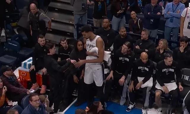 要不别打了?北京时间1月14日上午,西部前二雷霆和马刺队展开较量,在激烈的较量中,马刺中锋文班亚马数次摔倒险些受伤,让球迷经出一身冷汗。 上半场结束前,雷霆核心亚历山大突破撞上文班亚马后强行出手不中,投篮后倒地的亚历山大用脚夹住准备抢板的文班亚马小腿,导致其失去平衡摔出数米,但裁判没有表示。 无独有偶,第三节开始不到五分钟,亚历山大突破时以肘开路撞上文班亚马,后者膝盖受到撞击再次摔倒。虽然亚历山大这次吃到进攻犯规,但文班亚马出于安全考虑暂时下场。面对雷霆队凶悍的打法,也许暂时避战是个好主意。雷霆VS马刺 NBA吐槽大会