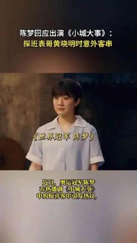 陈梦回应出演热播剧! 奥运冠军陈梦因在热播剧《小城大事》中客串"用菜刀打球"的乒乓球高手引发全网热议,2026年1月初探班表哥黄晓明时,被剧组临时邀请饰演剧中乒乓球高手"小陈"。她调侃"探着探着演上了一个角色",因角色同名形成"小陈演小陈"的戏剧性效果。拍摄当天她本意观察黄晓明工作状态,却意外体验片场生活,最终以复古造型完成电视剧首秀。陈梦回应出演热播剧 陈梦世锦赛 陈梦迪奥造型 陈梦公主风大片 陈梦迪奥首秀 陈梦语录