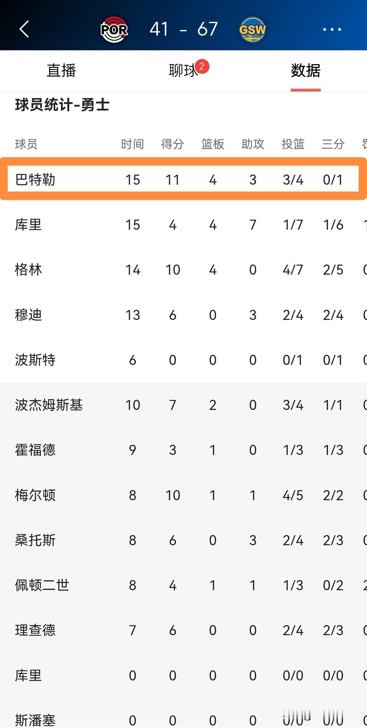 勇士超级球星巴特勒又开始频繁的罚球了!在今天勇士主场迎战开拓者的比赛中,目前双方的上半场比赛已经结束,勇士以67:41领先对手。在前两节比赛中,巴特勒首发出战15分钟,投篮4中3,其中三分球1中0、罚球5中5轻松得到11分4篮板3助攻,他的场上正负值为+14。 在上半场比赛中,巴特勒仅有用4次出手就得到11分,这样的得分效率真是太夸张了。