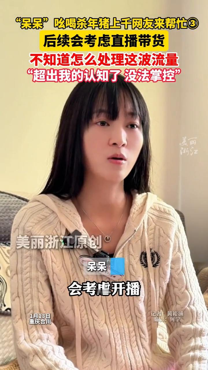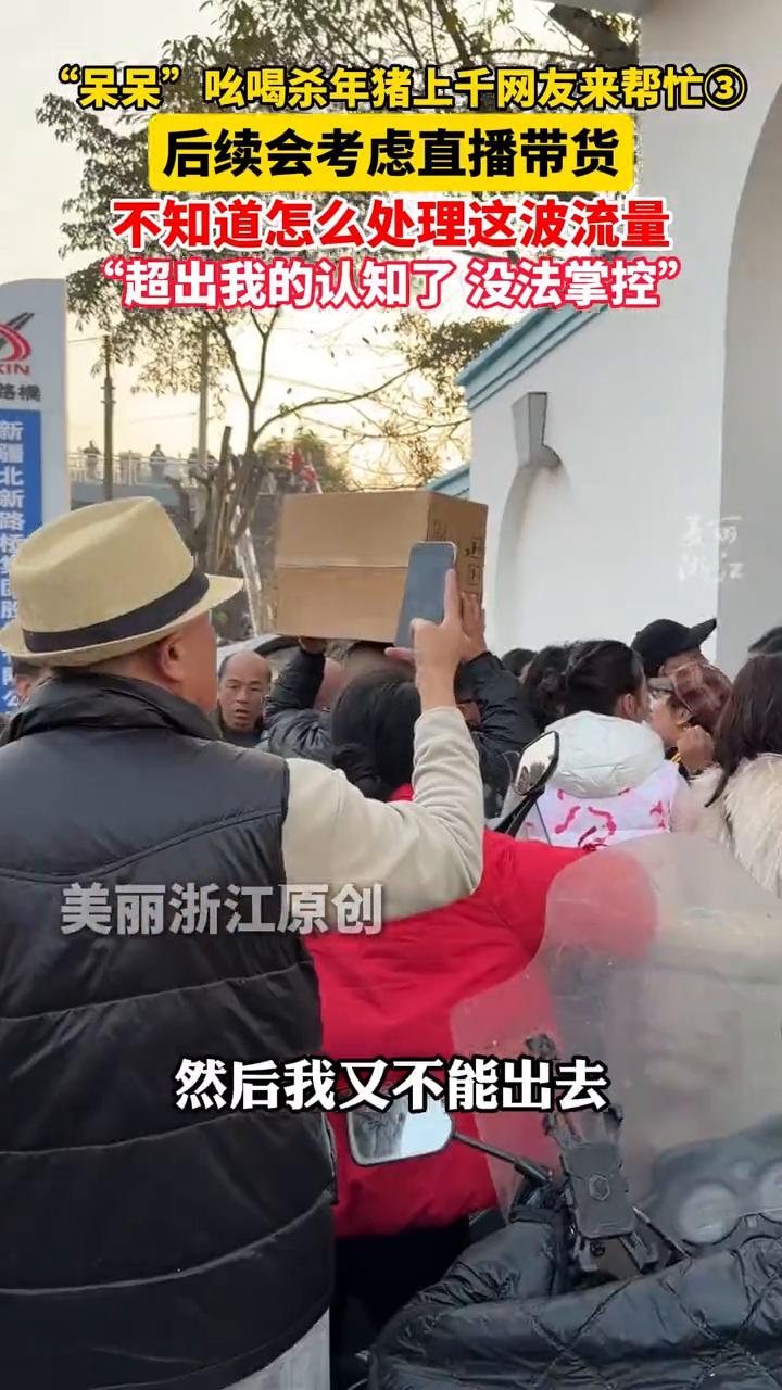 "呆呆"吆喝杀年猪上千网友来帮忙3,后续会考虑直播带货,不知道怎么处理这波流量。 呆呆。 会考虑开播,我现在的压力是面临现在外面的那些粉丝朋友们,又不能出去跟他们像第一天那样打招呼,因为人流量太大了。这个局面已经超出我的认知了,没法掌控了,不知道该怎么办。放年猪 农村开始刹年猪 呆呆开直播 呆呆直播间 呆呆杀猪宴 网红呆呆