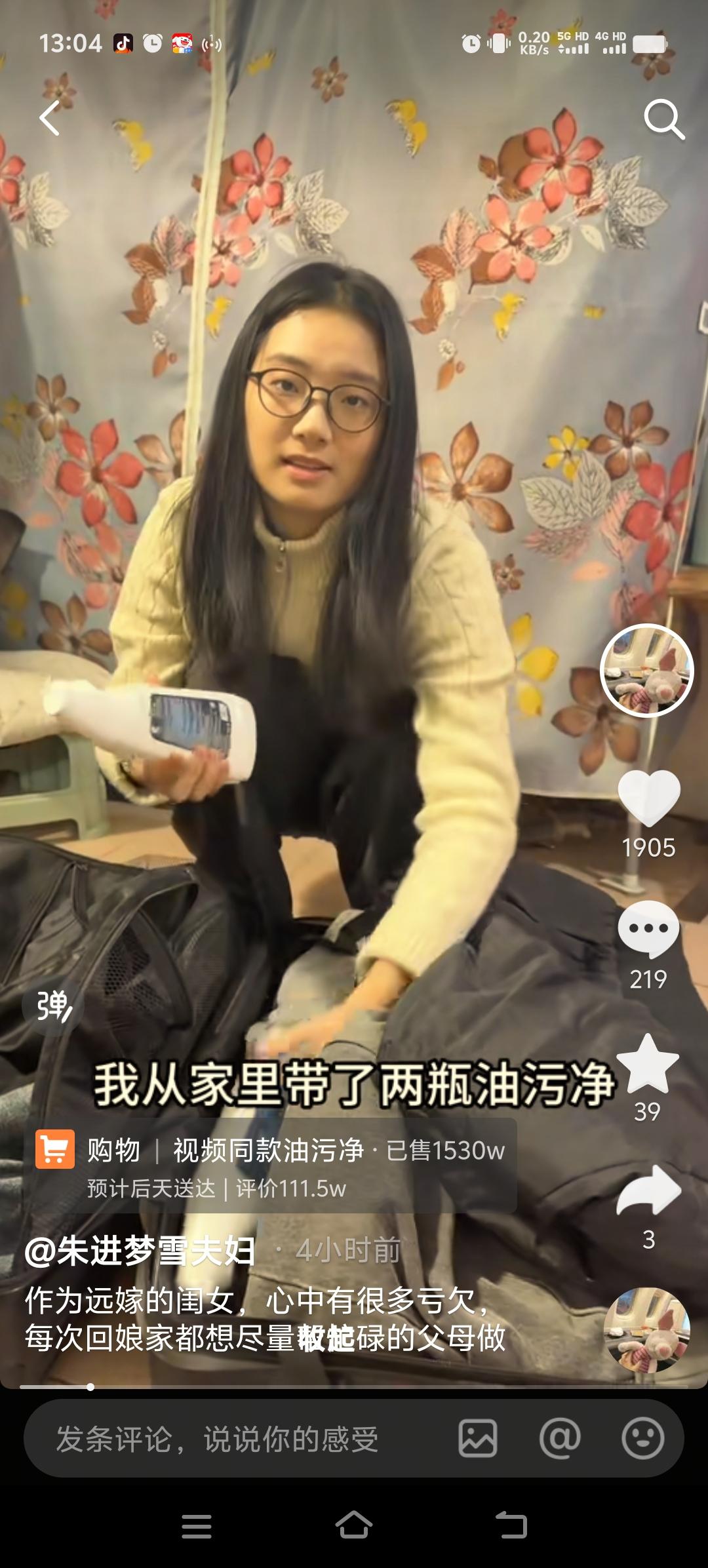 朱进夫妻俩都是慢性子,真像是上天特意安排的一家人。妻子从行李箱里拿出两瓶油污净,也没专门找个塑料袋包装,拿出来就开始给父母打扫卫生。这小两口确实勤快,一刻也闲不住。 朱进的妻子觉得自己远嫁,亏欠父母太多,所以回来后就想尽力多为父母做点事。如今两口子走红了,更要多学习如何运营自媒体,把自媒体做好,把日子过红火。 爆料