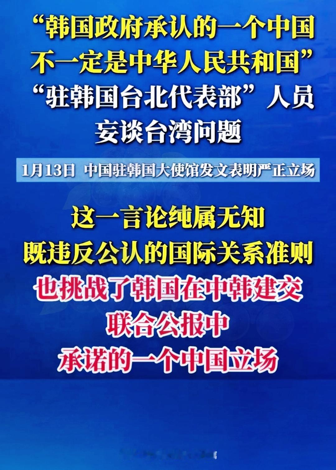 现在网上有些人真是闲得慌,非要把几千年前的老皇历翻出来,硬往现代主权国家头上套。 《驻韩国台北代表部》说,韩国当局承认的一个东方大国不一定是中华人民共和国。 韩国当局说,一个东方大国在他们承认的范围内不一定是中华人民共和国,还有很多人不知道这到底是怎么回事,甚至还有部分民众认为这件事情是外交部发言人说谎,我都搞不懂这些人为什么瞎不拉几地,明明是事实,为什么他们看不出来?一个东方大国不一定是中华人民共和国,那还可以是谁呢?这还用问吗?当然是咱们中华文明始祖,大部分国人都认为这是一个礼仪之国,不知这个礼仪之国还有很多人不知道,不仅仅是一个,还包括很多很多,根本就不需要他国承认,都是我们固有的。 既然如此,为什么有些人看不到这个明明白白的事实,非要黑我们的外交部发言人,难道不是脑残粉就是脑残黑吗? 当年韩国佬承认一个东方大国,那还是咱们清朝时候的事了,他们现在承认的一个东方大国还是同文同种的大国,韩国佬现在敢于承认这个大国吗? 当然不敢了,因为这个大国已经被他们杀灭了,还敢说他们现在承认的一个东方大国就是同文同种的那个吗? 当然不敢了,因为他们现在承认的一个东方大国已经跟他们彻底绝交了,还敢说他们现在承认的一个东方大国就是中华文明始祖吗? 当然不敢了,因为中华文明始祖在他们眼里就是一个贼国,怎么会是那个大呢? 唉!不知这些民众看到外交部发言人这番话,不知道心里是什么感受? 我们建立国家间的信任,不应该寄希望于他国,而是应该寄希望于自身的强大,不管任何时候任何事,都不要指望他国来帮助我们,我们只有自己强大了,才能真正掌握自己的命运,个人的命运也要掌握在自己的手里,而不是寄希望于别人来帮你实现。 韩国承认中华人民共和国是唯一合法当局,这可是白纸黑字赖不掉的铁证。 这个道理从古至今永远不会过时,就像人与人相处一样,你永远不要把自己的命运交在别人手上,永远只能靠自己!真要维护国家利益,那就得看现在的国际法,看法律文件。 说句实在的,有些言论纯属故意搅浑水,把古代王朝、文明始祖和现代主权国家混为一谈,就是想消解“一个中国”的铁律。中韩建交公报明明白白写着韩国承认中华人民共和国是唯一合法政府,这是没法篡改的。 更别被情绪化的标签带偏,把理性质疑说成抹黑。维护国家主权,靠的是事实和国际法,不是瞎联想、乱扣帽子。咱们得拎清概念,别被居心叵测的话术带节奏,这才是真的护着国家利益。