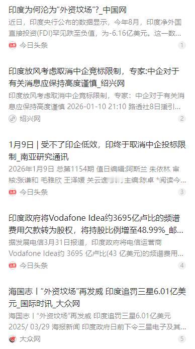 印度又来忽悠中企去投资了,印度传出要取消中企在印度的竞标限制,希望中国企业去印度参与基础设施的投资,不过中国的业内专家表示中国企业应该对此保持高度的谨慎!   麻烦看官老爷们右上角点击一下“关注”,方便您进行讨论和分享,感谢您的支持!   近期,印度放出了一个让市场瞩目的消息:计划取消实施五年的中企参与政府基建项目竞标限制。这一消息由印度财政部透露,路透社等多家外媒援引政府消息人士的说法进行了报道,一时间让不少关注海外市场的中企动了心。   要知道,印度这些年一直顶着 “全球增长最快经济体” 的光环,联合国预测其 2026 年经济增速能达到 6.6%。但光鲜数据背后,是印度基建领域的巨大资金缺口,受全球经济疲软影响,仅靠本土资本根本填不满这个窟窿,急需外资来拉动增长。   2020 年中印边境冲突后,印度出台限制政策,要求中企参与政府项目必须先注册并通过严格的政治和安全审核,实质上把中企挡在了门外。这一限制让印度自身也吃了苦头,电力设备进口受阻导致火电扩容计划滞后,多个基建项目因缺乏合适竞标方而延误,中企中标金额 2021 年同比下降 27%。   如今印度松口,说白了就是经济压力下的务实之举。但让人警惕的是,这个 “放宽政策” 至今只停留在口头层面,没有任何正式文件支撑,最终决定权还在印度总理办公室。而且印度明确表示,敏感行业限制和战略项目的安全审查不会取消,这种 “半开半闭” 的态度,本身就充满不确定性。   熟悉印度市场的人都清楚,这里早已是名声在外的 “外资坟场”。最典型的就是沃达丰案,2007 年这家英国电信巨头以 109 亿美元收购相关资产,印度税务部门突然发难,即便最高法院判定无需缴税,印度议会仍修改法律 “溯及既往”,最终逼得沃达丰让渡股权并承担巨额费用。   这样的 “收割” 操作并非个例。2025 年,三星被印度以逃避进口关税为由,追缴 6.01 亿美元税款和罚款,这笔钱几乎吞掉了其在印市场大半利润。小米、vivo 等中企也未能幸免,要么账户资产被无端没收,要么高管遭逮捕调查,处境艰难。   谷歌、亚马逊、沃尔玛等国际巨头,在印度也都遭遇过天价罚单或强制股权让渡。印度的法律体系素有 “高标准立法、普遍性违法、选择性执法” 之名,商业领域仅刑事处罚条款就有两万六千多条,政策说变就变,中央与地方规定还常冲突,外资企业合规成本高得吓人。   更让人望而却步的是,印度外资撤离潮从未停止。官方数据显示,2014 年至 2021 年 11 月,就有 2783 家外资企业关停在印业务,占同期在印跨国公司总数的六分之一。福特、麦德龙、哈雷戴维森等行业巨头,都因受不了当地的监管乱象和利益侵占而黯然退出。   印度的行政效率也饱受诟病,企业开办要走 10 道程序,实际耗时远超官方宣称的 18 天,项目审批更是拖拖拉拉。土地产权混乱、劳工法严苛、基础设施落后等问题,进一步推高了投资成本,不少企业不得不自备发电设备、修缮道路,苦不堪言。   中国业内专家之所以反复强调要保持高度谨慎,正是看透了这些本质问题。印度此次放宽限制,核心是为了解决自身的资金和项目进度难题,而非真心改善营商环境。中企一旦投入巨资,后续可能面临政策突变、无端处罚、利润无法汇回等多重风险。   要知道,2024 至 2025 财年,印度净外国直接投资已从近 100 亿美元骤降至 3.53 亿美元,同比暴跌 96.5%,这一数据足以说明外资对印度市场的信心不足。连西方企业都在加速撤离,中企更没必要冒着血本无归的风险去 “试水”。   对于有海外拓展需求的中企来说,印度市场的潜力确实诱人,但风险更需警惕。在没有看到明确、稳定、可执行的政策文件前,切勿盲目跟风。真正的投资安全,源于透明的规则、稳定的预期和公正的执法,而这些正是印度当前最缺乏的。   与其被口头承诺忽悠入局,不如等待印度拿出实质性的改革举措,用实际行动证明其营商环境的改善。中企出海不易,每一笔投资都应慎之又慎,避开那些看似诱人、实则布满陷阱的 “机会”,才能走得更稳、更远。