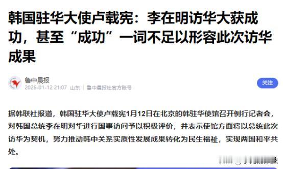 韩国这次赚翻了! 据韩联社报道,韩国驻华大使卢载宪一句“成功不足以形容访华成果”