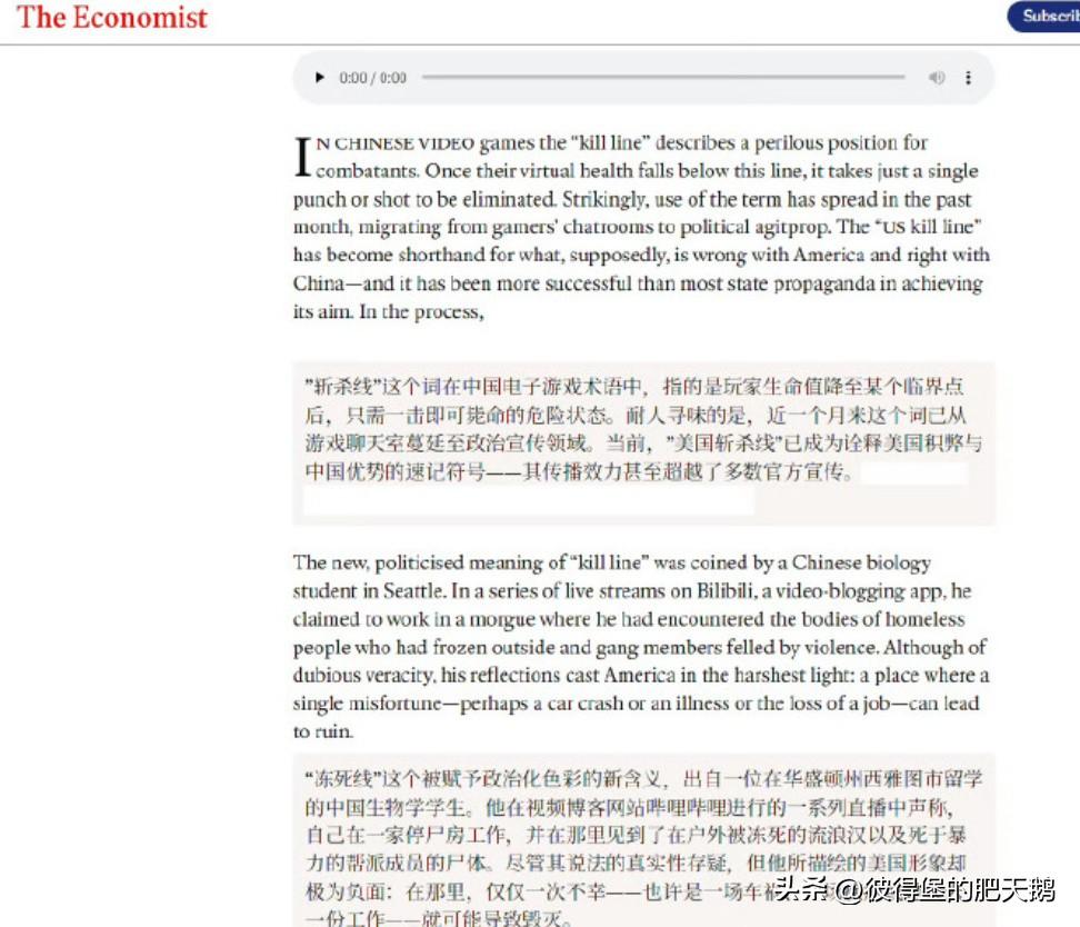 斩杀线上了美国主流媒体《纽约时报》和《经济学人》,斯奎齐大王牢a在群里说已经从美国光速跑路了,金银细软都不要了。确实得跑了,再不跑下场就成死于泥头车的纽约兰兰了。 更有趣的是,两篇报道都是二鬼 子华裔手笔。果然反华最猛的还是这群二鬼 子。