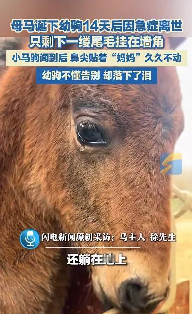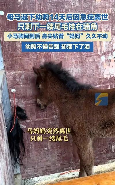 看哭了,万物皆有灵!刚出生14天的小马,找到妈妈留下的一绺尾毛后,站着不动悄悄哭了。 成都的一匹小马驹,来到这个世界才两周,就永远失去了妈妈。母马因为急性肠梗阻,没救回来。这种病在马里很急,肠道会打结,救过来的机会很小。 马棚突然空了一半。小马腿脚还颤颤的,就开始围着妈妈常待的地方,一圈一圈地打转。它把鼻子贴在地上、墙角,不停地嗅。它不明白发生了什么,只知道那个温暖的身体、熟悉的味道不见了。 主人看着难受,就把母马生前留下的一绺尾毛,挂在了墙角的铁钉上。他不知道这有没有用。 小马走了过来。它先是远远站着,然后一步一步靠近,最后把鼻尖轻轻伸向那绺毛发。 接着,它整个身体静了下来,一动不动地站住了。主人走过去,才看到小马长长的睫毛下,挂着两道清晰的湿痕——它安静地流眼泪了。 主人心里一下子也被揪紧了,他说:“虽然是个动物,我感觉动物的感情也很纯粹、很直接。” 有网友说,小马甚至不懂什么是死亡,它只是凭着本能,疯狂寻找那个妈妈的味道,那个最重要的安全感来源。你们觉得是不是这样?