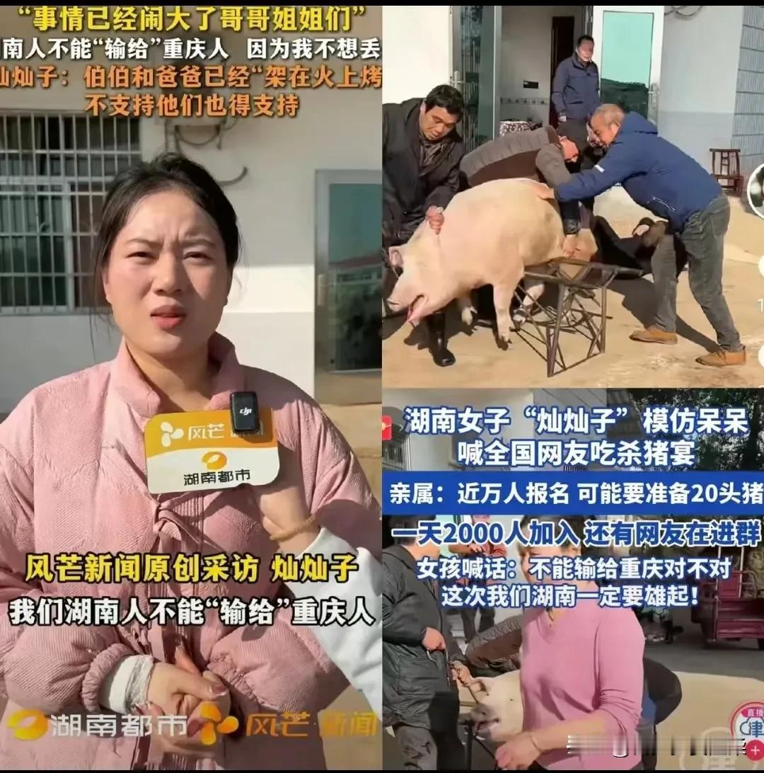这回事情闹大了! 湖南灿灿太倔强,为了不输给呆呆, 19头猪100张桌子已就位。但她没有看清呆呆吃的亏。 这明显是上头了,斗气呢!看人家呆呆的“刨猪宴”火出圈,心里不服,觉得自己也能行,甚至要搞更大场面。你搞一头猪,我就搞十九头;你摆几张桌子,我就摆一百张。阵仗是拉开了,架势挺唬人,可这根本不是在做活动,这是在“斗富”、“比阔”。 她没看明白,呆呆火起来,核心不是猪多不多,桌子多不多,而是那份无意中流露出来的真实、热闹和人情味,是陌生人之间那种自发的互助和快乐。大家去呆呆那儿,不是为了吃那口猪肉,是去感受那种久违的乡土气息和纯粹的热闹。这些东西,你用钱砸不出来,用猪和桌子的数量更堆不出来。 灿灿这么一搞,味道全变了。从“分享快乐”变成了“刻意比拼”,从“自发参与”变成了“大操大办”。大家一看,你这不就是模仿跟风,还想压人一头吗?新鲜感没了,真诚度也打了折扣。而且,搞这么大排场,成本得多高?压力得多大?万一没那么多人来,或者来了感觉不对味,那场面得多尴尬?这亏,呆呆可能已经无意中吃过(比如突然爆火后的疲惫与应对失措),但灿灿正一头往里钻。 这种赌气式的模仿和加码,往往吃力不讨好。大家不傻,能看出来你这是为了面子硬撑。热度可能能蹭一时,但想留住人心,长久地火下去,靠的还是独特的内核和真诚的互动。学样子容易,学魂儿难。灿灿这十九头猪,怕是白忙活了。 各位读者你们怎么看?欢迎在评论区讨论。福彩3d有什么好的选号方法 明星那么赚钱为什么都要去开面馆 莽灿灿 呆呆厉害 呆呆为什么火