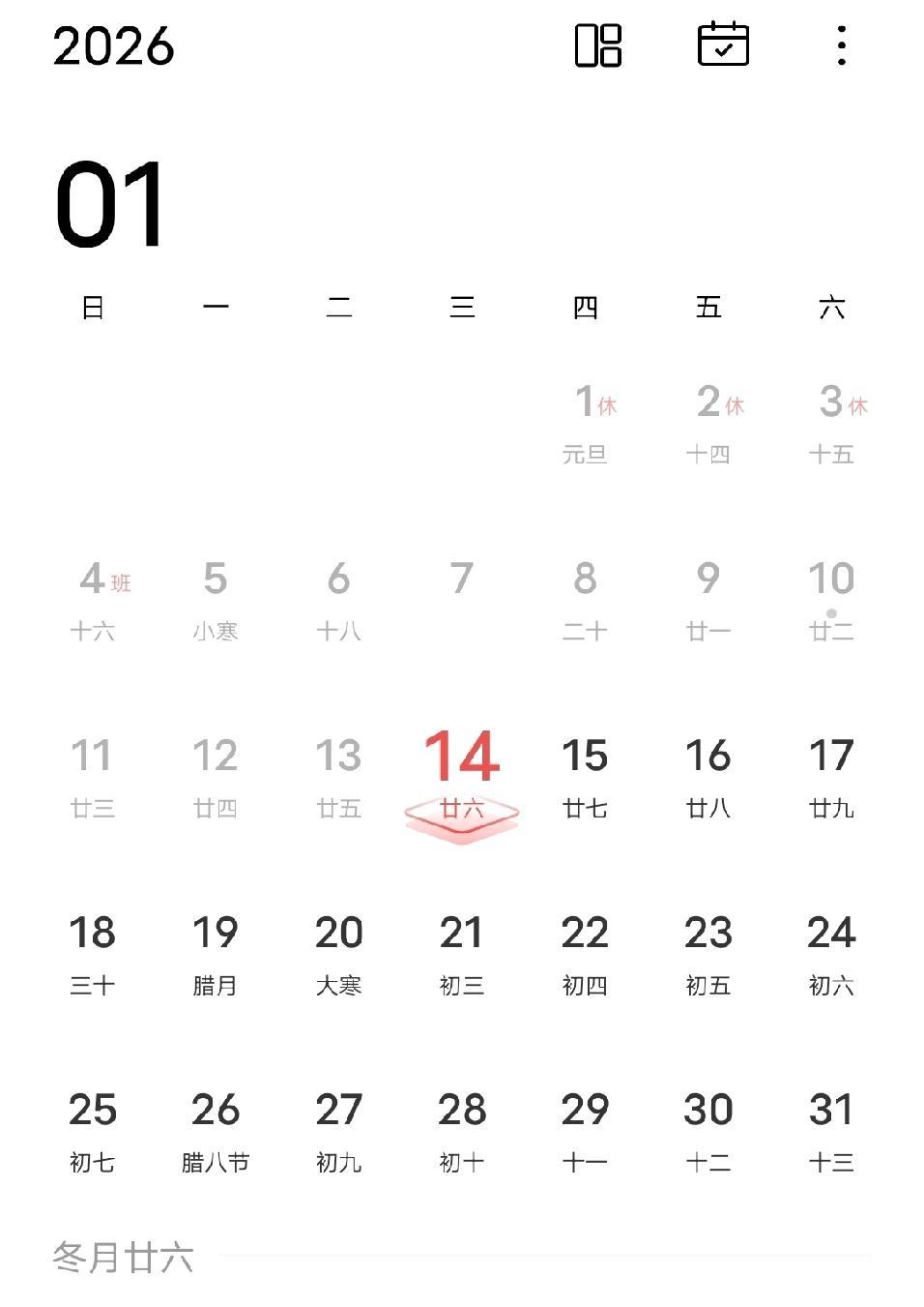 我觉得今天这个日子还是记录一下吧,今天是2026年1月14日,农历在小寒节气,三九第七天,今天的最高温度是20度。 小时候背的九九歌,一九二九不出手,三九四九冰上走,三九四九是一年中最冷的日子,今年不灵了吗?南京这地方,小寒三九天从来没有这么热过。