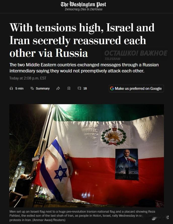 俄罗斯做媒:以色列与伊朗秘密约定互不首先动手 《华盛顿邮报》援引外交消息人士报道,在局势紧张急剧升级的背景下,以色列与伊朗经俄罗斯斡旋,秘密交换了互不首先攻击的保证。 在伊朗大规模抗议爆发前数日,以色列方面通过俄罗斯向德黑兰传递信号:若伊朗不率先发动攻击,以色列也不会出手。伊朗亦通过同一渠道作出回应,称不会实施预防性打击。 此次接触实属特例:两国仍是死敌,且今年6月还爆发了为期12天的冲突。 值得注意的是,这份私下的保证与以色列此前的公开表态截然相反,以色列此前曾暗示,因伊朗的导弹计划,或将对伊发动新的打击。 德黑兰对以色列的保证持谨慎态度。消息人士称,伊朗担心即便以色列信守承诺,美国仍可能发起攻击,而以色列则仅会针对黎巴嫩真主党采取行动。 与此同时,特朗普称“伊朗境内对抗议者的杀戮行为已经停止,彻底停止了”,并补充道:“目前没有任何处决抗议者的计划,相关处决计划均不存在。我从权威渠道得知了这一消息。”