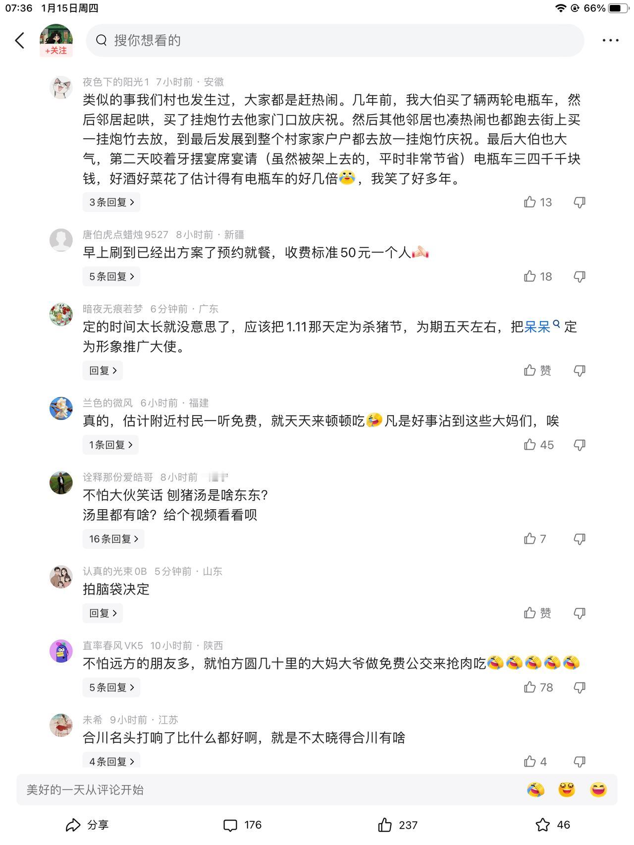合川文旅现在真是骑虎难下了 接了呆呆的直播 刨猪汤说要一直办到正月十五,结 果现在来的都是一群骑着三蹦子,拖家带口的老年人,据网友说大部分都是附近的村民,外地来的人已经很少了。 是啊,外地人要上班的。谁能没事了天天去挨冻在室外吃猪肉啊!再好吃,热闹也不能天天凑啊! 现在合川文旅傻眼了,已经承诺了也不能不办下去。笑不活了,网友说已经刷到后续了,没人收费50元。 这就行了,老人拿五十块钱去吃,这样猪肉钱有了,爱吃就去吃吧!赔不了,大家都赔不了。 网友是会带礼物去的,大姨就别想了!