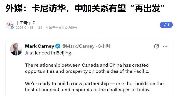 万万没想到:刚落地北京,加拿大总理就一句话定调,咱能不能信他? 1月15日凌晨,加拿大总理卡尼落地中国,通过社交媒体表示说:“加拿大与中国的关系为太平洋两岸创造了机遇和繁荣,我们已准备好建立新的伙伴关系——一种建立在我们过去最优秀的成果之上,应对当今挑战的伙伴关系”。 卡尼口中的“当今挑战”,暗指的就是美国对加拿大的觊觎和控制。毕竟近期美国的保护主义愈发嚣张,不仅威胁加征加拿大商品关税,甚至有政客喊出让加拿大成为“美国第51个州”的荒唐言论,把加拿大逼得进退两难。 为了这次访华,加拿大方面还特意做了铺垫。就在卡尼启程前,原本在台湾地区窜访的两名加拿大议员,突然提前结束行程离岛,理由就是不想干扰卡尼的访华行程,避免释放混乱的外交信号。 随行的团队更是豪华,涵盖了外交、贸易、农业、能源等多个领域的内阁重臣,连油菜籽主产省的省长都一同前来,这架势一看就是奔着谈合作来的。 中方此前也明确表态,期待以此次访问为契机,加强沟通、增进互信、拓展合作,巩固中加关系转圜势头。从表面上看,这似乎是一场顺理成章的“破冰之旅”,但只要回头看看过去,就知道这事没那么简单。 2018年12月,加拿大警方应美国要求,在温哥华机场无故扣押华为首席财务官孟晚舟,这一扣就是近三年时间。期间,加拿大无视中方多次严正抗议,无视事件的政治本质,一味盲从美国的指令,把中加关系推向了冰点。 那段时间,加拿大在经贸、安全等多个领域紧跟美国步伐,对华采取一系列不友好举措,给两国企业和民众的利益带来了不小损失。这份伤害刻骨铭心,绝不是一句“建立新伙伴关系”就能轻易抹平的。 说到底,加拿大如今的转变,核心还是为了自身利益。近年来加拿大经济状况不佳,2025年10月的GDP更是出现了近三年来的最大跌幅,而美国的贸易打压更是让其雪上加霜。 中国作为加拿大的第二大贸易伙伴,是其实现贸易多元化、摆脱对美国依赖的关键选择。他们急需中国市场消化积压的油菜籽,需要中国的投资助力能源产业发展,这才急着上门示好。 这种基于利益的“转向”,本身就带着不确定性——今天能为了利益而来,明天也可能为了利益再次倒向美国。所以咱们的态度很明确:不是不欢迎合作,但合作的前提是诚意,而诚意从来不是靠嘴说的。 如果加拿大真能回头是岸,拿出实实在在的行动,比如取消对中国电动汽车加征的100%关税,妥善解决油菜籽贸易中的分歧,真正尊重中国的核心利益和重大关切,那我们完全可以搁置过往争议,推动双方合作走向正轨。 可要是只是嘴上说得漂亮,心里还打着“两面派”的小算盘,想靠几句空话就套取合作红利,那肯定是行不通的。 现在卡尼的访华之旅才刚刚开始,后续的谈判结果值得关注。 但无论如何,我们都要保持清醒,别被一时的“甜言蜜语”冲昏头脑,接下来就看加拿大能不能拿出足够的魄力,把这波“示好”真正转化为经得起检验的诚意了。
