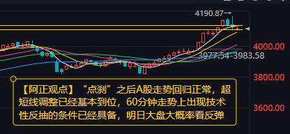 【1月15日A股收评:大盘超短线调整已经到位 60分钟走势上出现技术性反抽的条件已经具备 明日指数大概率看反弹】 盘前分析“今日市场大概率以震荡消化为主……,核心观察多空分水岭4127点的争夺以及下方4110-4100点的支撑力度”,午评“午后大盘会有技术性反抽,但并不表明整体调整已经结束”判断符合大盘实际,三大指数涨跌不一,沪指盘中一度跌破4100点,创业板指午后探底回升。两市成交额29055亿元,较上一个交易日缩量10359亿,个股跌多涨少,参与今日交易的5169只个股中,2168只收红,涨超9%个股84只。 盘面上,市场热点较为杂乱,板块角度看,半导体板块午后走强,矽电股份20CM涨停创历史新高,彤程新材、康强电子、中旗新材涨停;CPO概念震荡拉升,环旭电子涨停;旅游酒店板块表现活跃,陕西旅游、众信旅游、大连圣亚涨停;有色金属板块走高,四川黄金、罗平锌电涨停;AI应用、商业航天等板块跌幅居前;高位人气股集体退潮,金风科技、鲁信创投等多股跌停。 指数表现:沪指跌0.33%,报收4112.60点;深成指涨0.41%,报收14306.73点;创业板指涨0.56%,报收3367.92点。 板块表现:513个板块中,138个收红,半导体、CPO概念、旅游酒店、有色金属等板块涨幅居前;AI应用、商业航天、互联网电商、军工信息化等板块跌幅居前。 资金表现:大盘资金全天净流出874.50亿元,其中上证净流出277.73亿,深证净流出596.77亿。 两市成交:两市全天成交额29055亿元,较上一个交易日成交额缩量10359亿元,上证成交11759亿元,较上一个交易日成交额缩量4311亿元。 明日猜想:今日成交大幅缩量超万亿,“点刹”之后A股走势回归正常,超短线调整已经基本到位,60分钟走势上出现技术性反抽的条件已经具备,明日大盘大概率看反弹。 我写精品,你来点赞,相互支持,携手共进。 (个人观点,仅供参考,据此操作,责任自负)