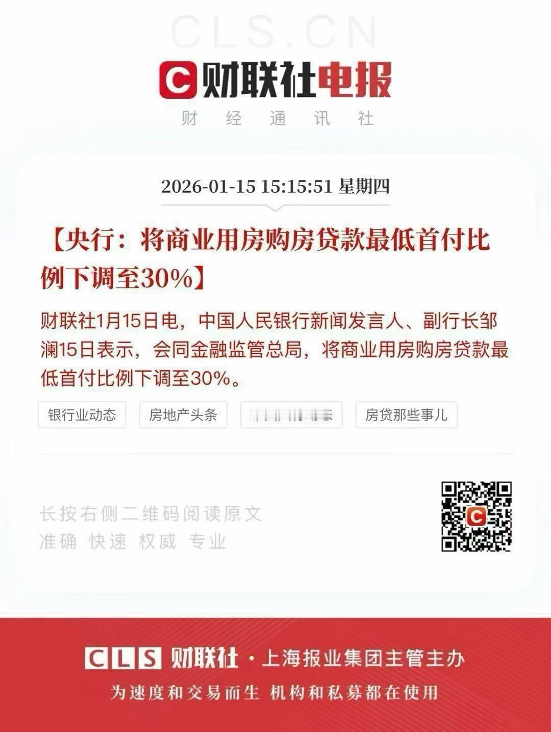 30年来头一次! 商业贷款首付比例由50%调整为30%! 这是给商铺带来新生的力量!以前可从来没有过这种政策,哪怕是在2008年,2013年房地产比较危机的时候。 这可破天荒的政策!这样可以给商铺的客户减少首付比例,降低购买的门槛。 这个绝对是大招!