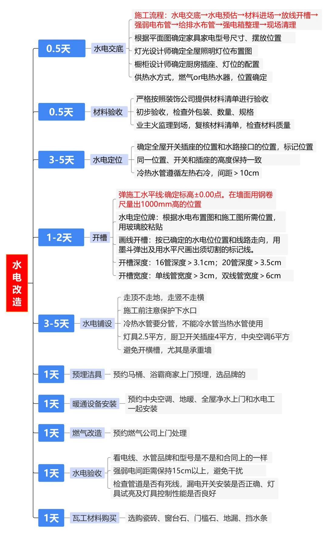 核心任务: 水电开槽、布管穿线、预留点位、验收。