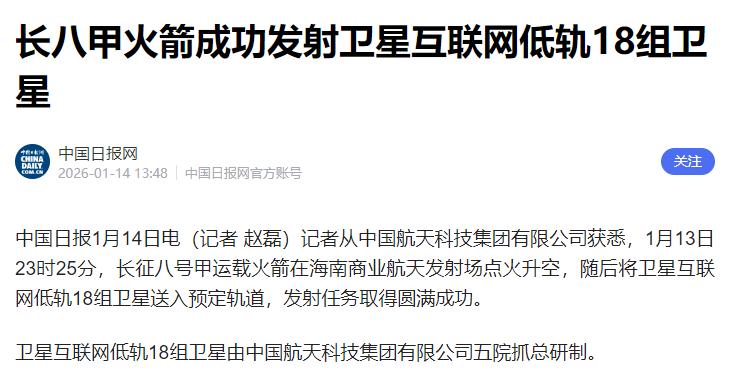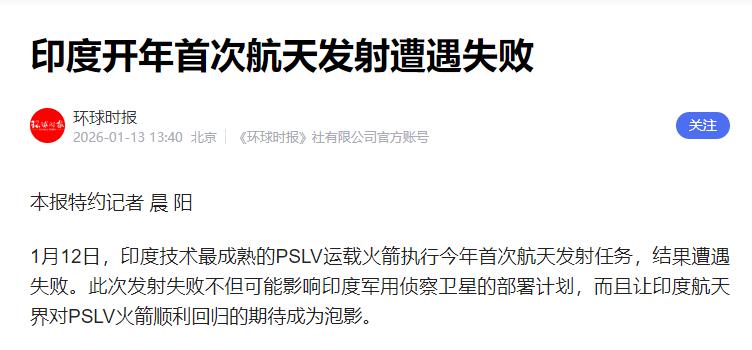 印度为了压中国一头,赶在中国发射火箭前一天先发射一枚火箭,结果颜面尽失。   当地时间1月12日上午10时18分,印度在萨蒂什·达万航天中心发射了搭载16颗卫星的PSLV-C62火箭,这场发射蓄谋已久,明眼人都能看出是想抢在中国前面占得先机,试图用“一箭十六星”的成绩彰显实力、压过中国一头。   发射初期,火箭前两级飞行还算顺利,地面控制中心的工作人员一度面露喜色,仿佛胜利近在咫尺。可就在众人以为此次任务能圆满成功之际,意外毫无征兆地发生了。   火箭飞行至346秒左右,进入第三级工作阶段时突然姿态失控,开始不规则翻滚,速度也远远达不到进入预定轨道的要求,最终搭载的16颗卫星全部未能入轨,径直坠入了印度洋中心区域,这场精心策划的“抢先发射”最终落得个功败垂成的结局。   第二天23时25分,海南商业航天发射场灯火通明,长征八号甲运载火箭准时点火升空,肩负着“一箭十八星”的发射重任,将卫星互联网低轨18组卫星送入太空。   整个发射过程行云流水,从火箭点火到卫星顺利进入预定轨道,每一个环节都精准无误,最终发射任务圆满成功,用实力诠释了什么是“丝滑入轨”。   值得一提的是,此次发射所用的长八甲火箭,发射测试流程已压缩至18天,后续还将向“7天发射、7天恢复”的目标迈进,这背后是中国航天技术的不断精进与积淀。   其实早在去年5月,印度同款PSLV系列火箭就曾因第三级发动机故障导致发射失利,当时相关部门声称已彻查整改,可仅仅8个月后,同样的故障再次上演,足见其技术隐患并未根除,质量管控体系存在明显疏漏。   此次失败的代价更是惨重,不仅损失了价值数亿美元的火箭与卫星,其中还包括承担边境监控任务的高价值主星,导致印度天基侦察网络出现空白期,更让搭载了多国卫星的国际客户蒙受损失,损害了其航天领域的国际信誉。   航天事业从来都不是靠急于求成就能出彩的,更容不得半点投机取巧。印度总想通过“抢时间、争风头”的方式证明自己,却忽视了技术积累的重要性,最终屡屡受挫;而中国航天始终脚踏实地、稳扎稳打,每一次成功都是技术沉淀的必然结果。   从长征系列火箭的第625次成功发射,到商业航天发射场的高效运转,中国航天的每一步都走得坚实有力。这场前后相隔一天的发射对决,看似是一次偶然的事件对比,实则是两国航天发展理念与技术实力的真实写照。   急于求成者终难成大事,稳步前行者方能致远。中国航天用一次次圆满成功,书写着大国科技的辉煌,也为世界航天事业贡献着中国力量。
