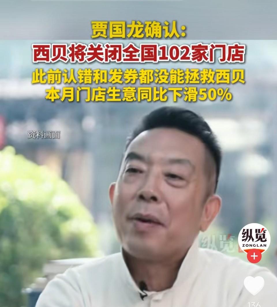 贾国龙确认:西贝将关闭全国102家门店! 此前认错和发券都没能拯救西贝本月门店生