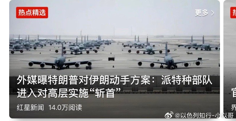 斩首?媒体透露特朗普有多种袭击伊朗的选择,其中之一是派特种部队进入,实施斩首行动。伊朗关闭领空也有类似担心。伊朗宣布暂时关闭领空 不过这种可能性应该最小。半年前以色列要对哈梅内伊藏身处空袭,特朗普阻止了,说他担心问题闹大。这次他应该也不会采用。海外新鲜事