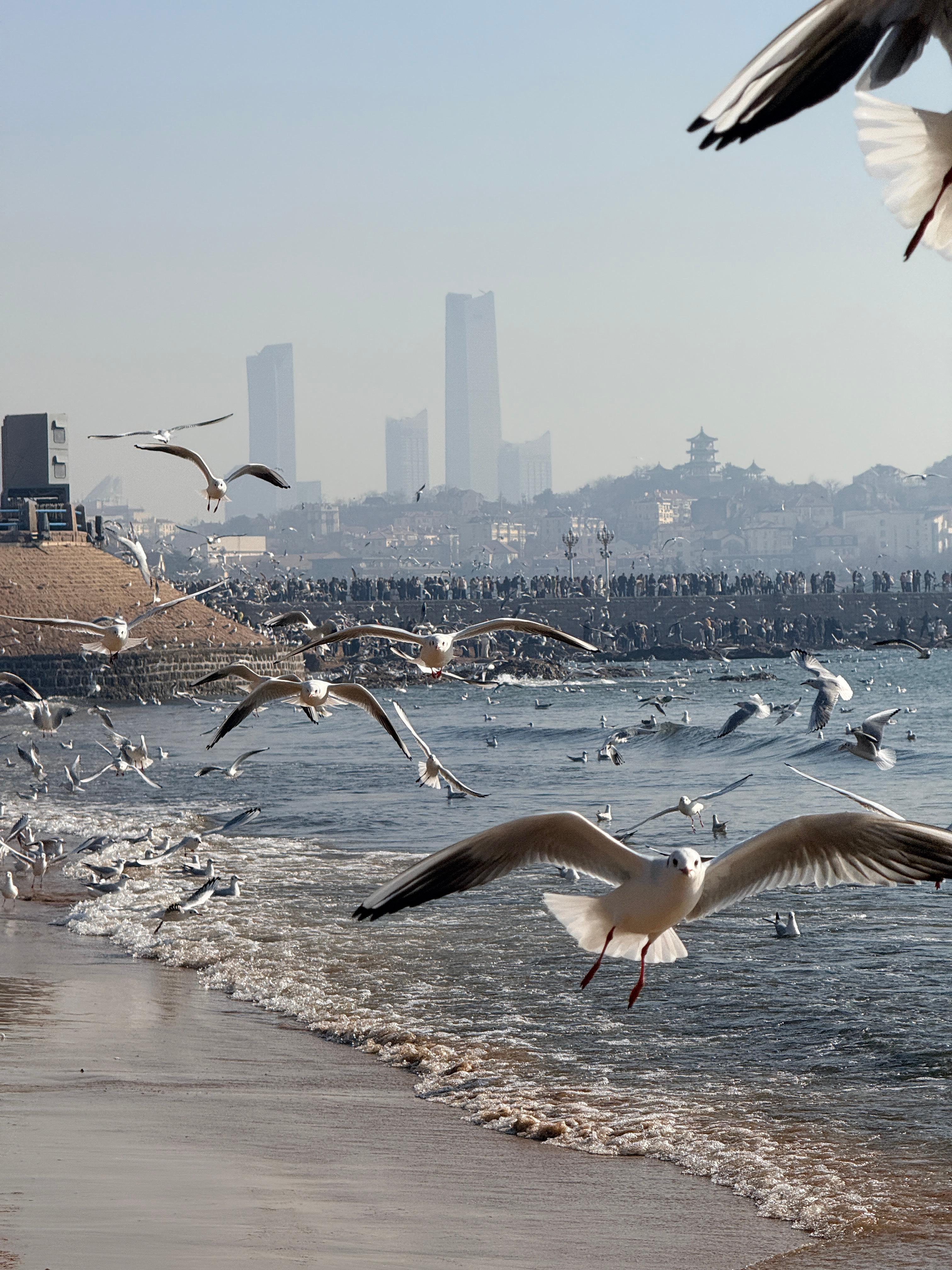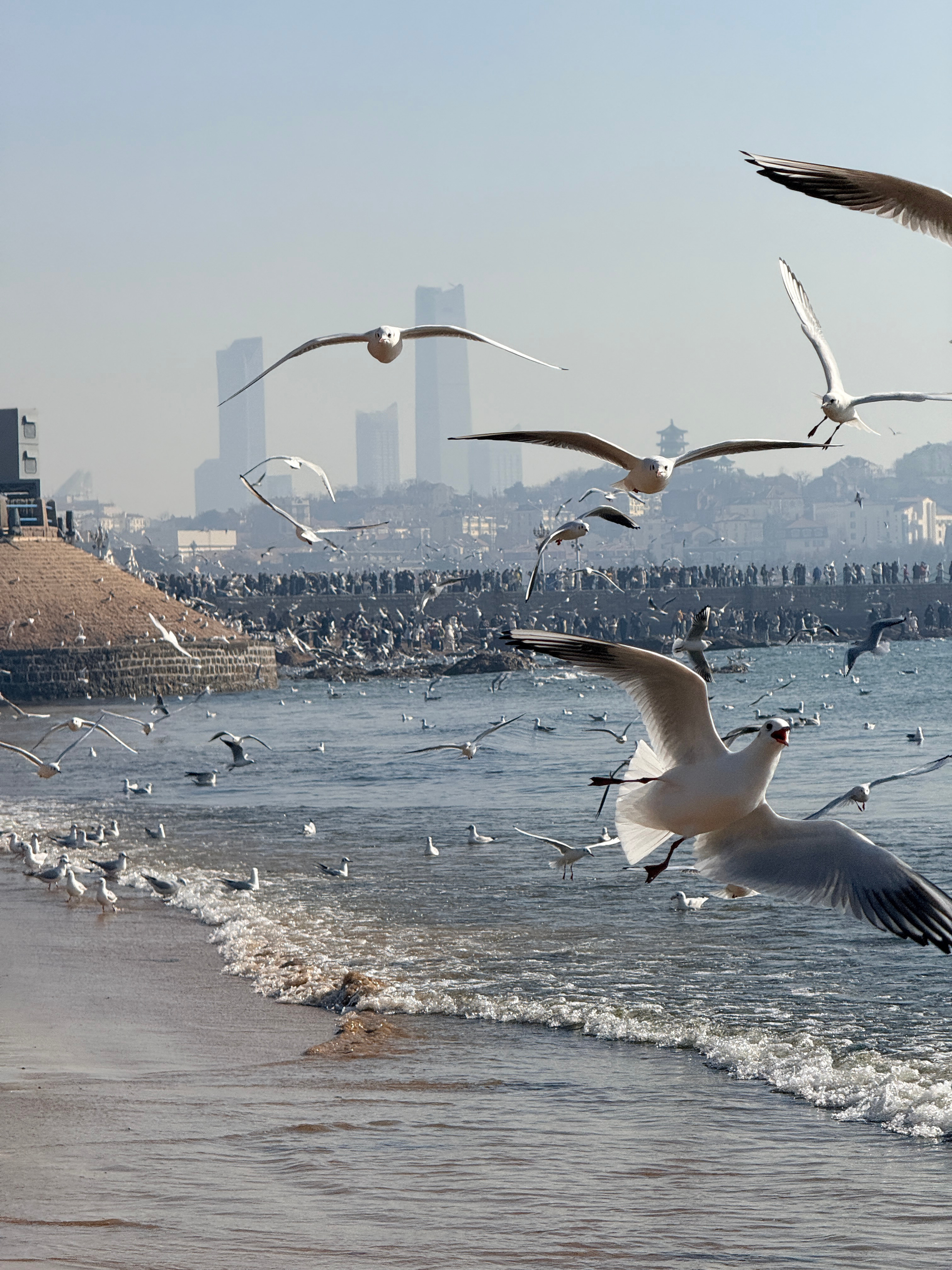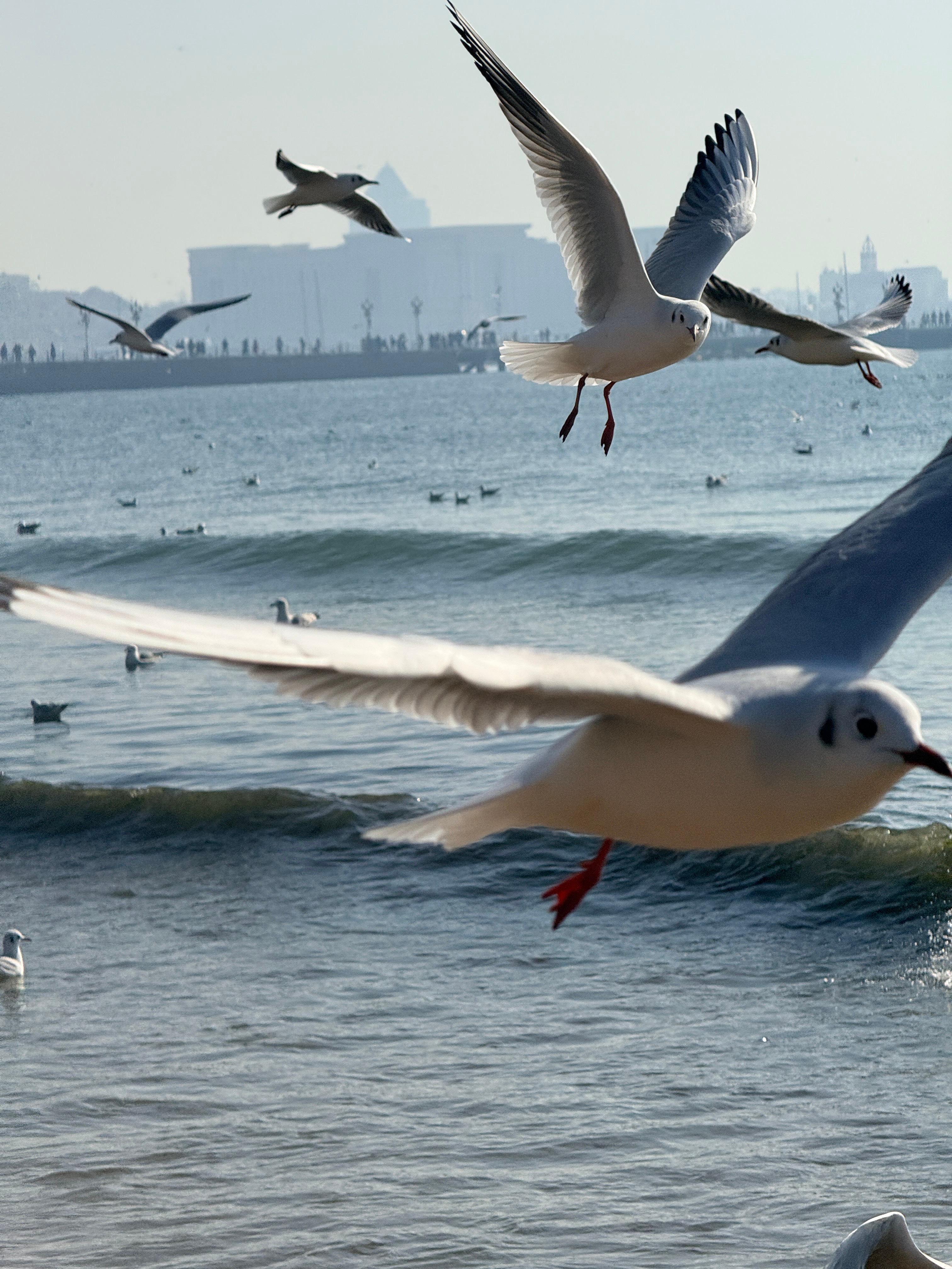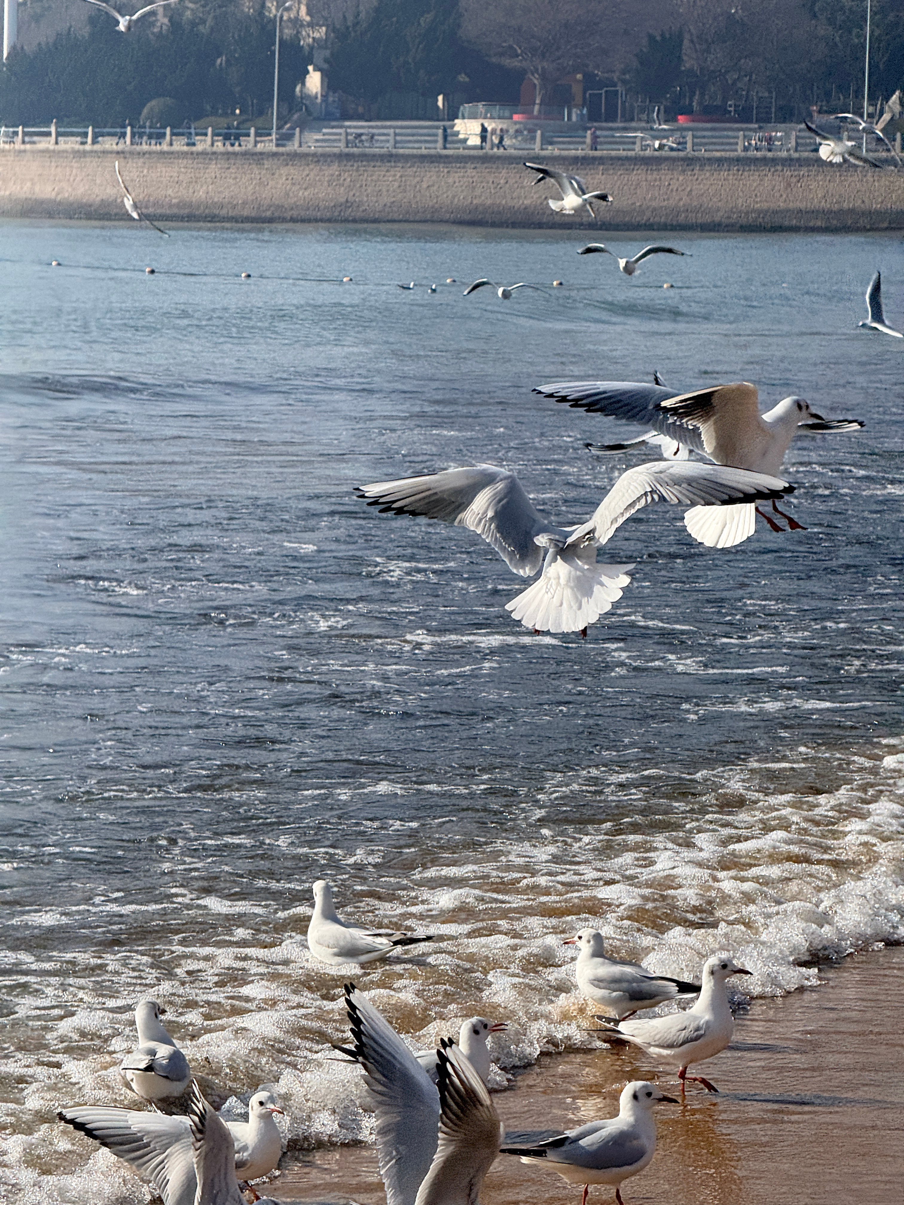 路过栈桥拍海鸥,咔咔咔咔,一会儿就100来张。青岛·栈桥海水浴场