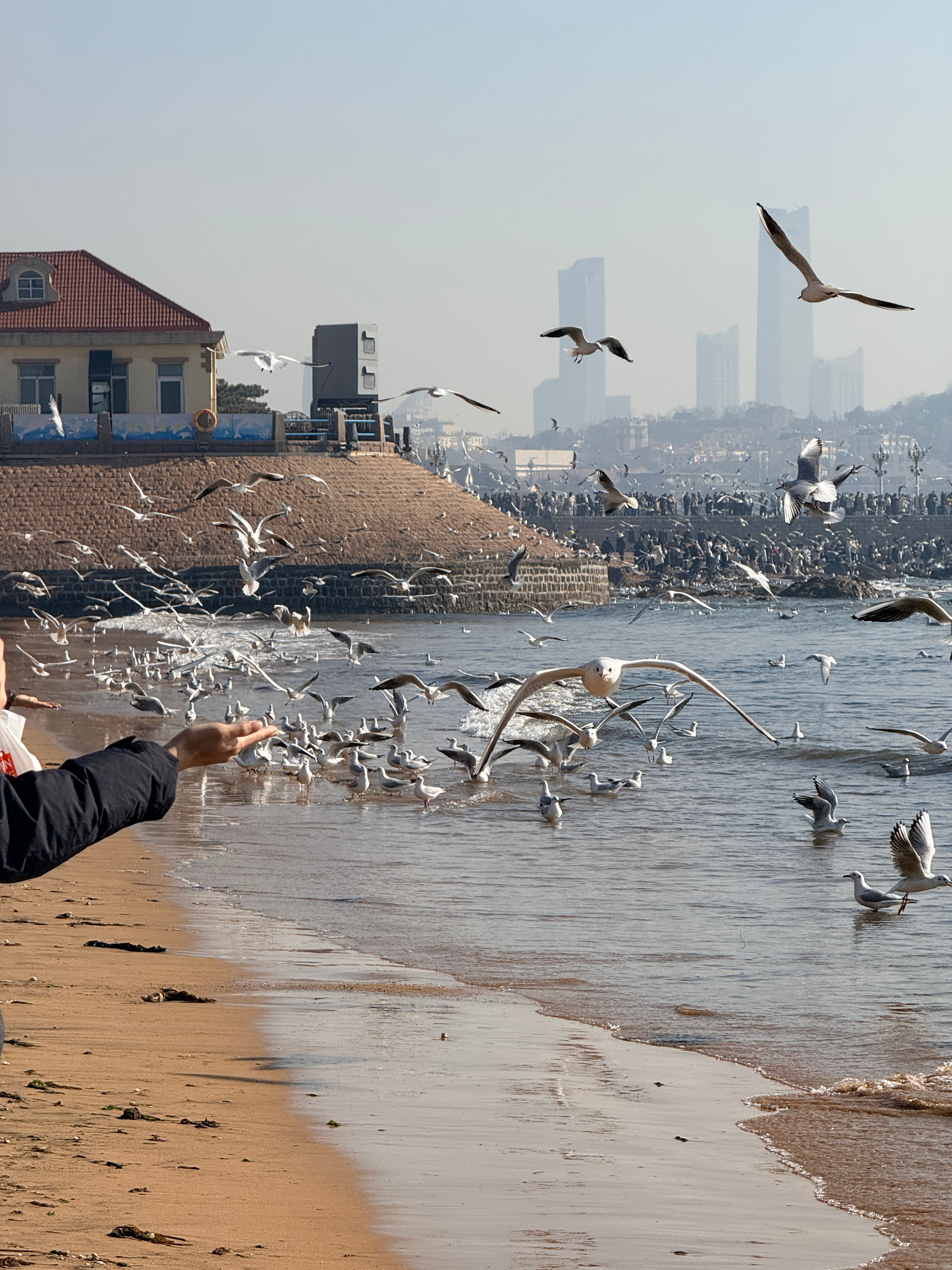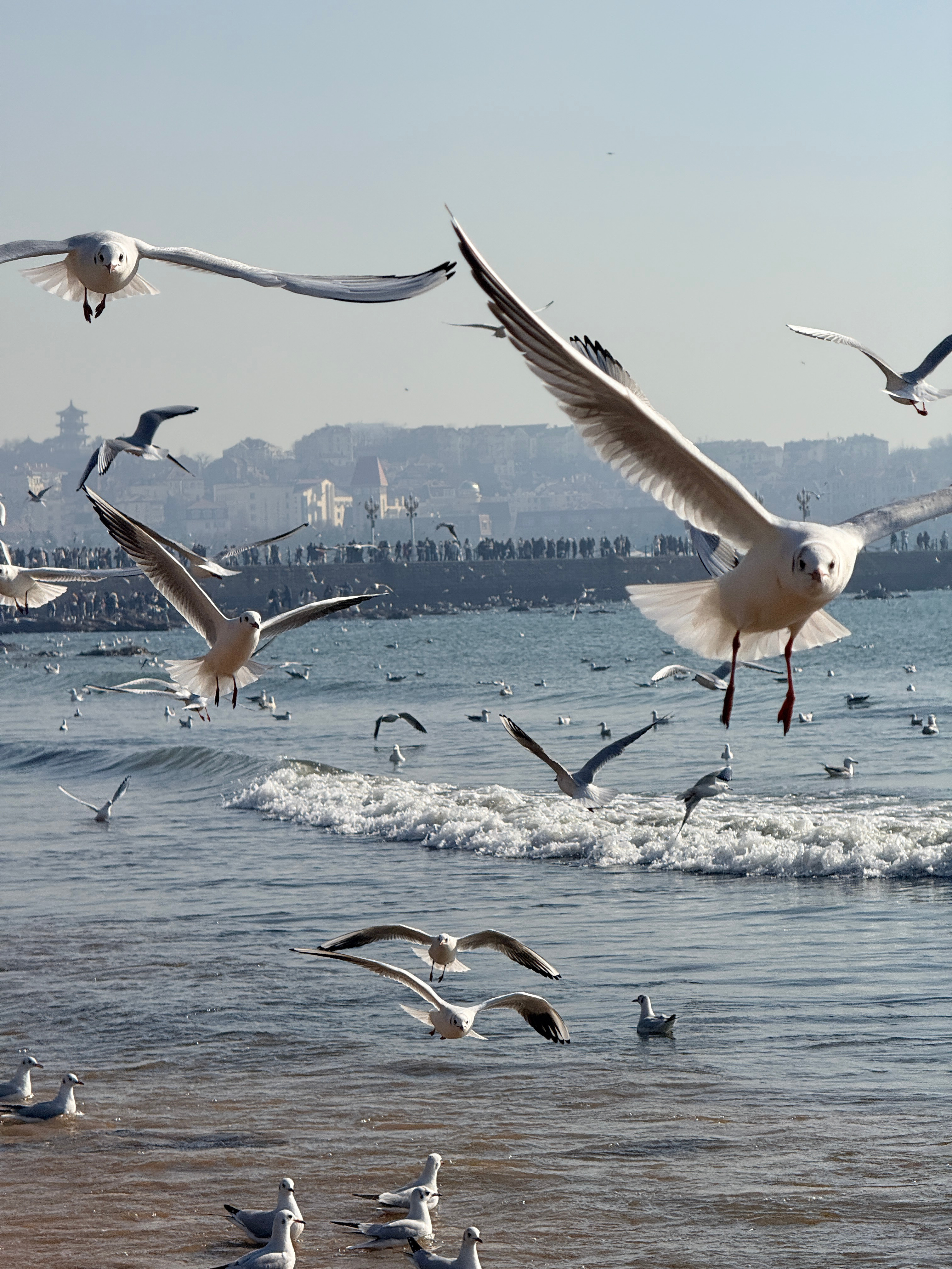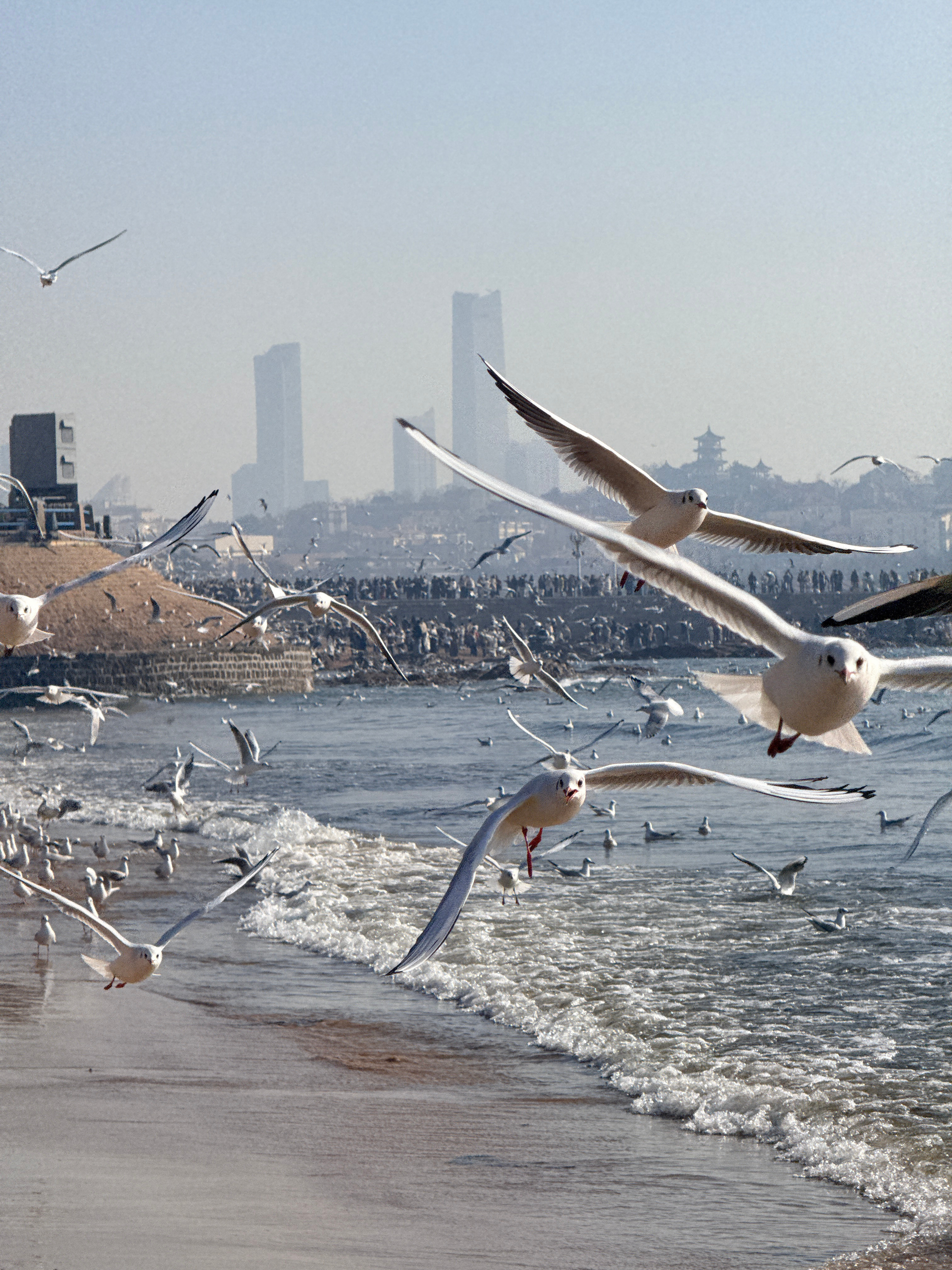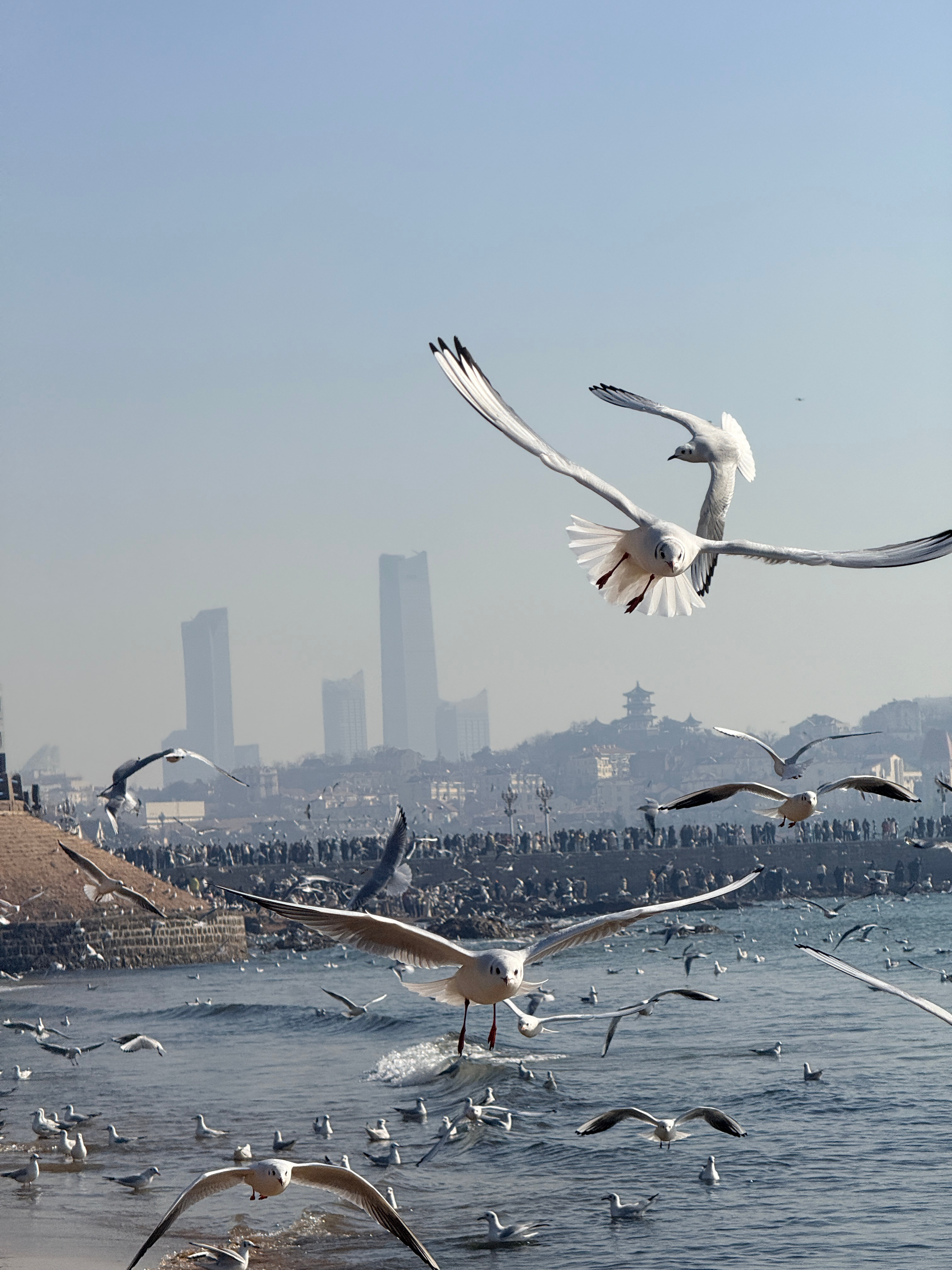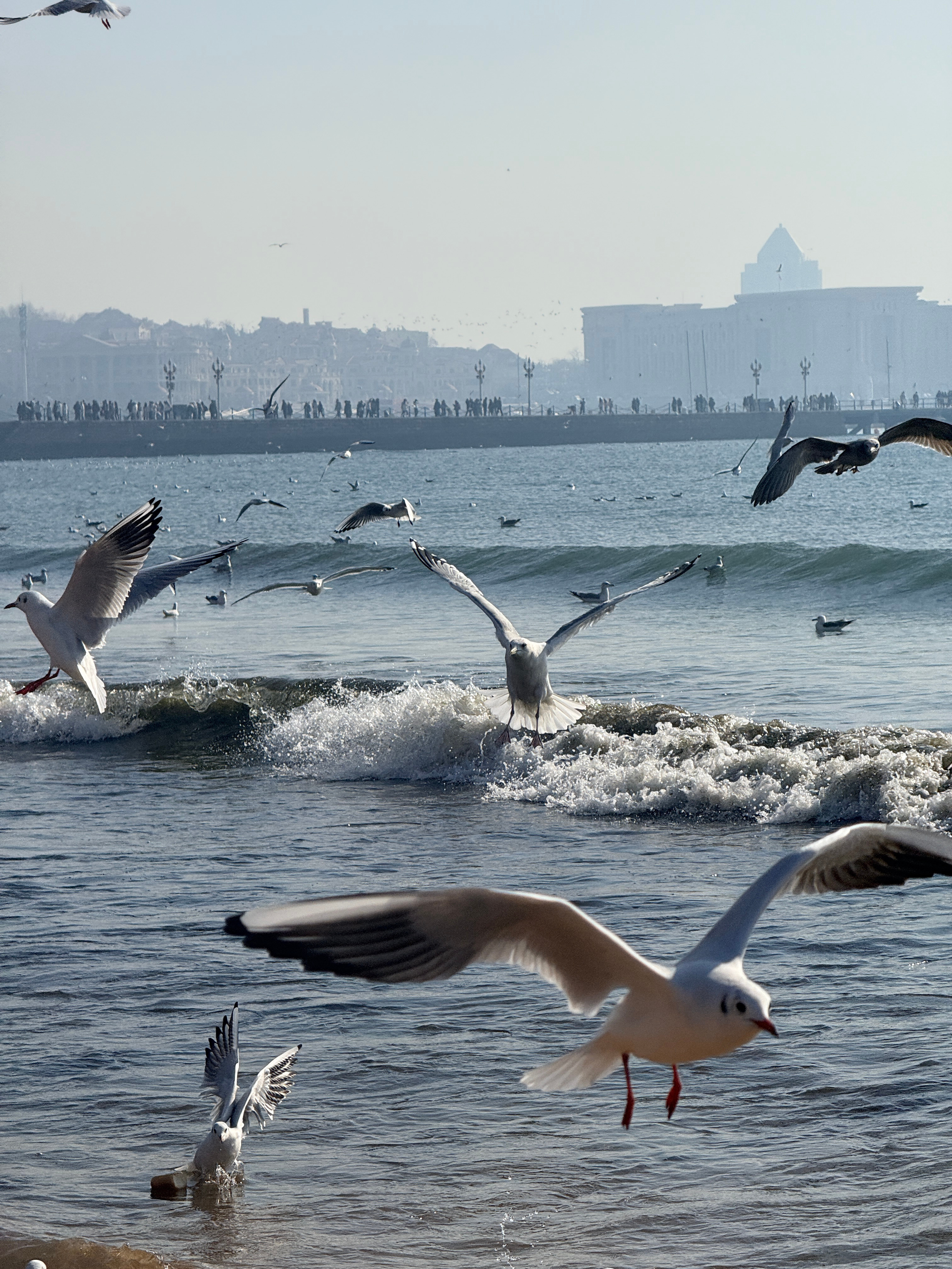 路过栈桥拍海鸥,咔咔咔咔,一会儿就100来张。青岛·栈桥海水浴场
