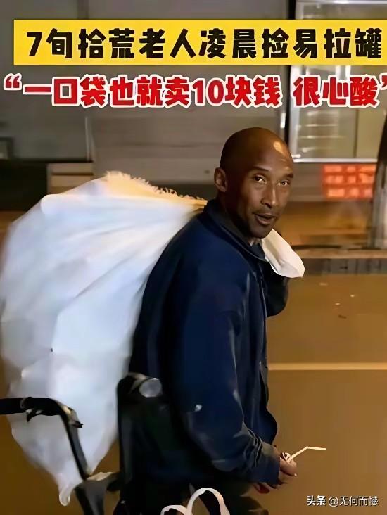 这是科比吗?第一眼看到这个捡废品的老人时,让人产生了错觉,还以为是已故的篮球明星科比,被人用AI技术生成了这个画面,但是仔细一看才发现,他只不过是长得像科比而已。现在在每一个小区,全天候都能够看到捡拾废品的人,其中多数都是老人,我们家的废品从来不卖,都会规规整整的放到垃圾箱旁,让这些捡废品的人随便去捡吧!