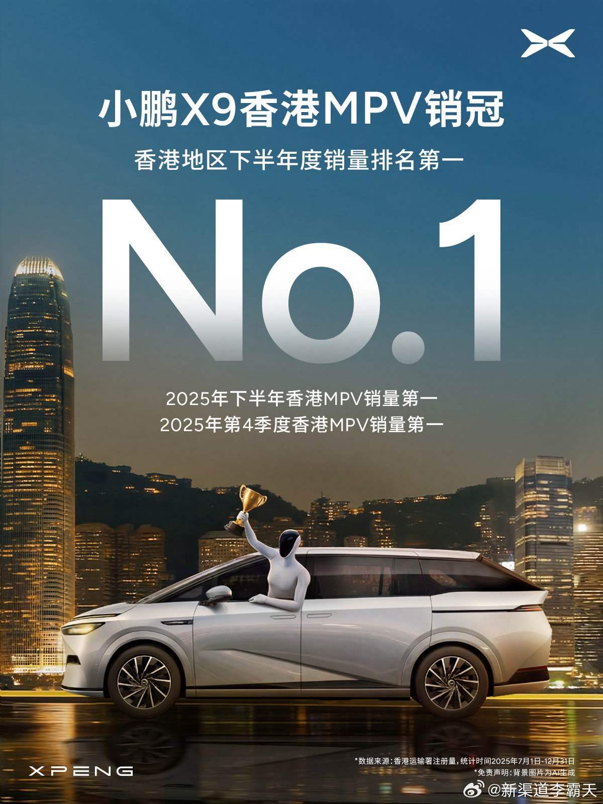 小鹏X9国内单月交付再创新高(25/12月交付5,424台)另外还蝉联香港MPV销冠~小鹏X9登顶高端MPV个人用户交付量第一小鹏X9登顶香港MPV双季度销冠