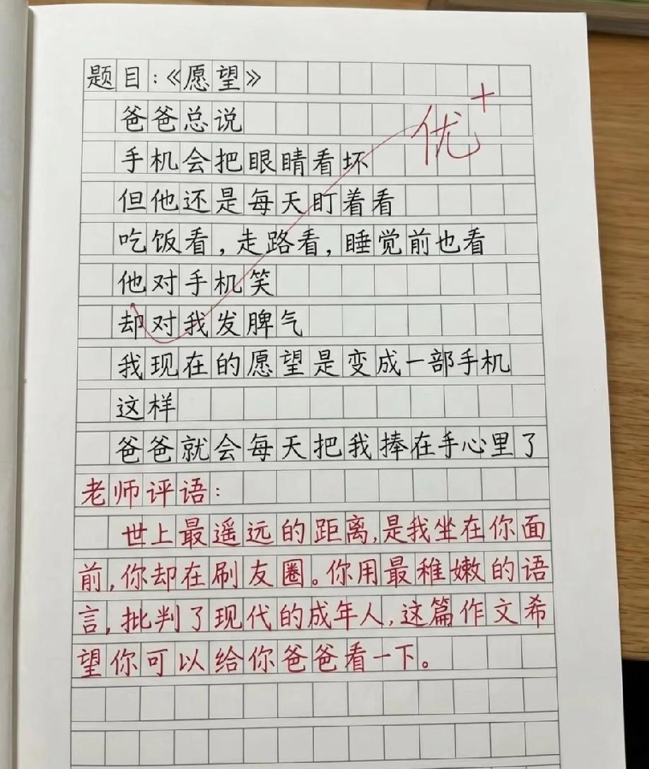 小学生作文《愿望》火了,只想变成爸爸的手机,看完瞬间破防!