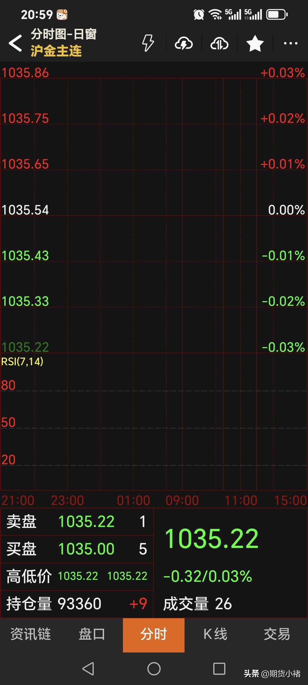 夜盘, 国内黄金期货 主力合约略微低开。 开盘价1035.22元, 略微低开0.32元。 对于黄金期货, 期货小褚认为 关注上方1050--1045压力情况!