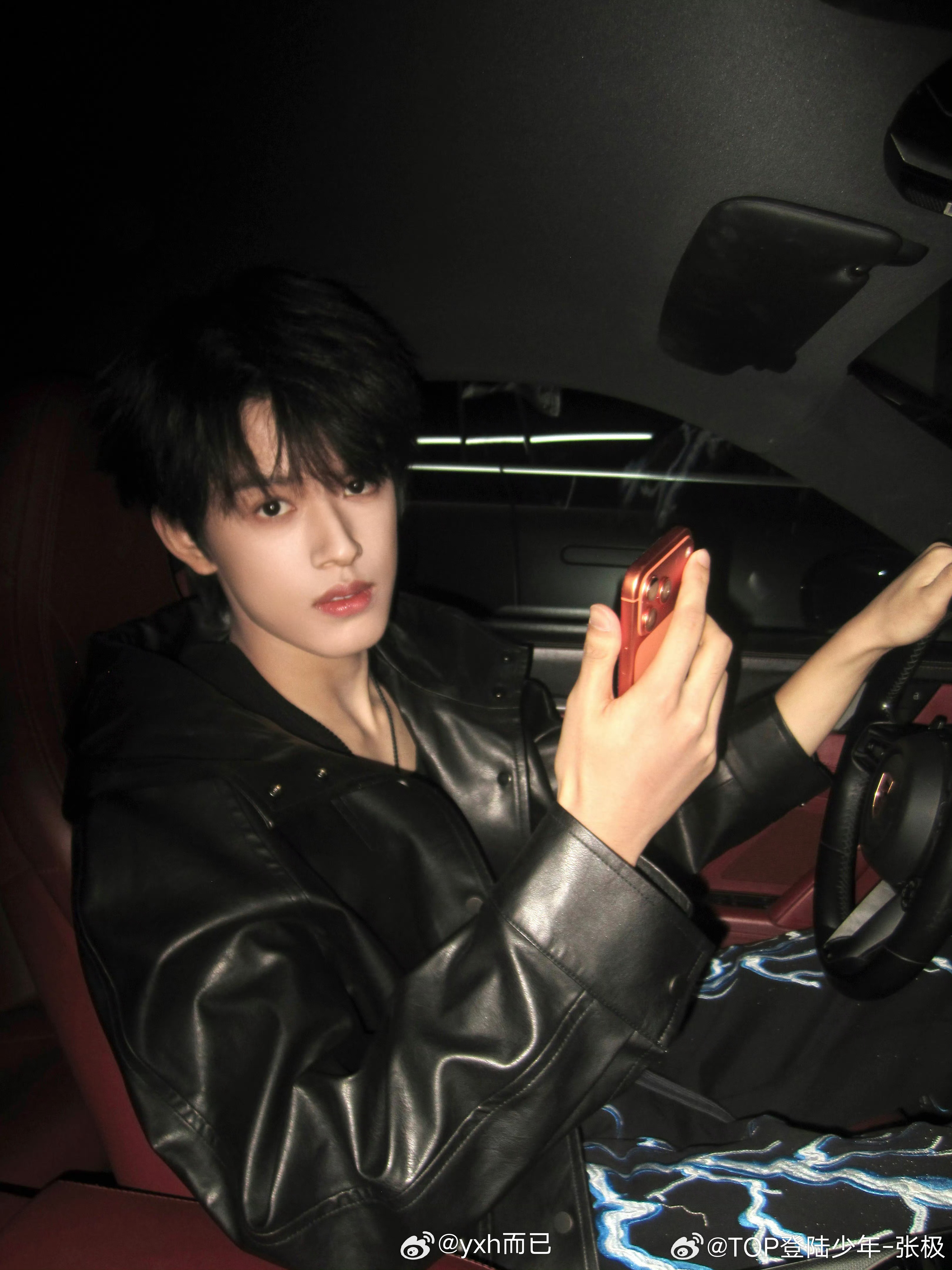 张极皮衣机车皮衣一上身,气场全开!光影间轮廓分明,每一帧都像电影特写。这身造型