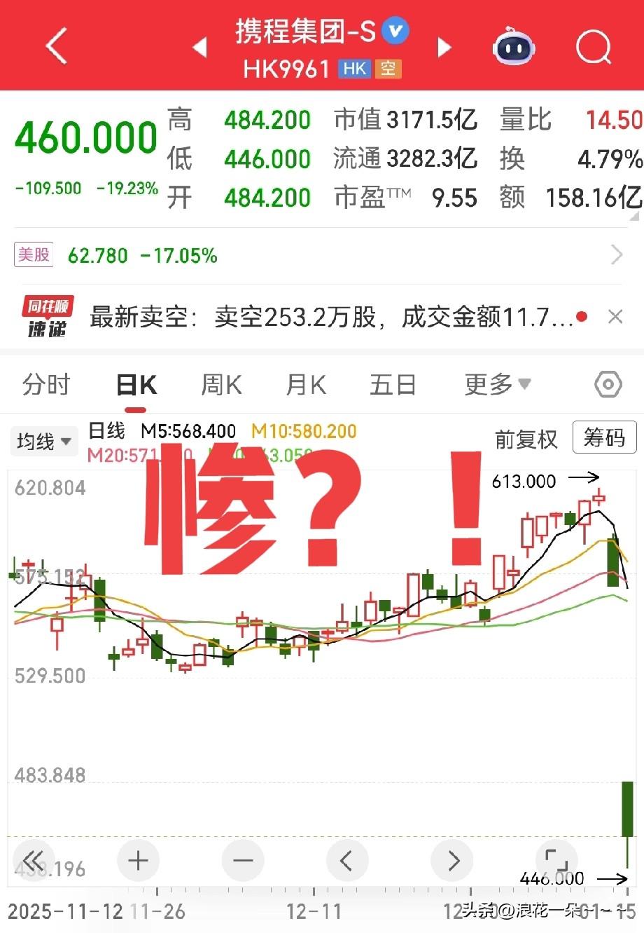 哦豁! 吓了一跳!刚看到携程涉嫌垄断被调查后,港股股价连续两天大跌,其中,今天暴跌达到19.23%! 市值3000多亿的大盘子,两天几乎蒸发了近千亿! 可以看出资本的嗅觉多么灵敏? 可以看出资本已经认识到了携程作为最大的在线旅游平台,突然被调查,肯定是存在一些问题的,比如说,大数据杀熟2选1。 希望这次反垄断调查之后,携程能够更好的维护公平竞争,更好的为老百姓服务吧,在旅游生态行业树立一个标准!