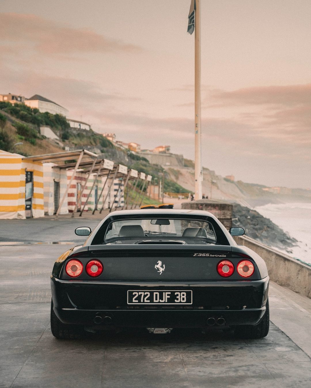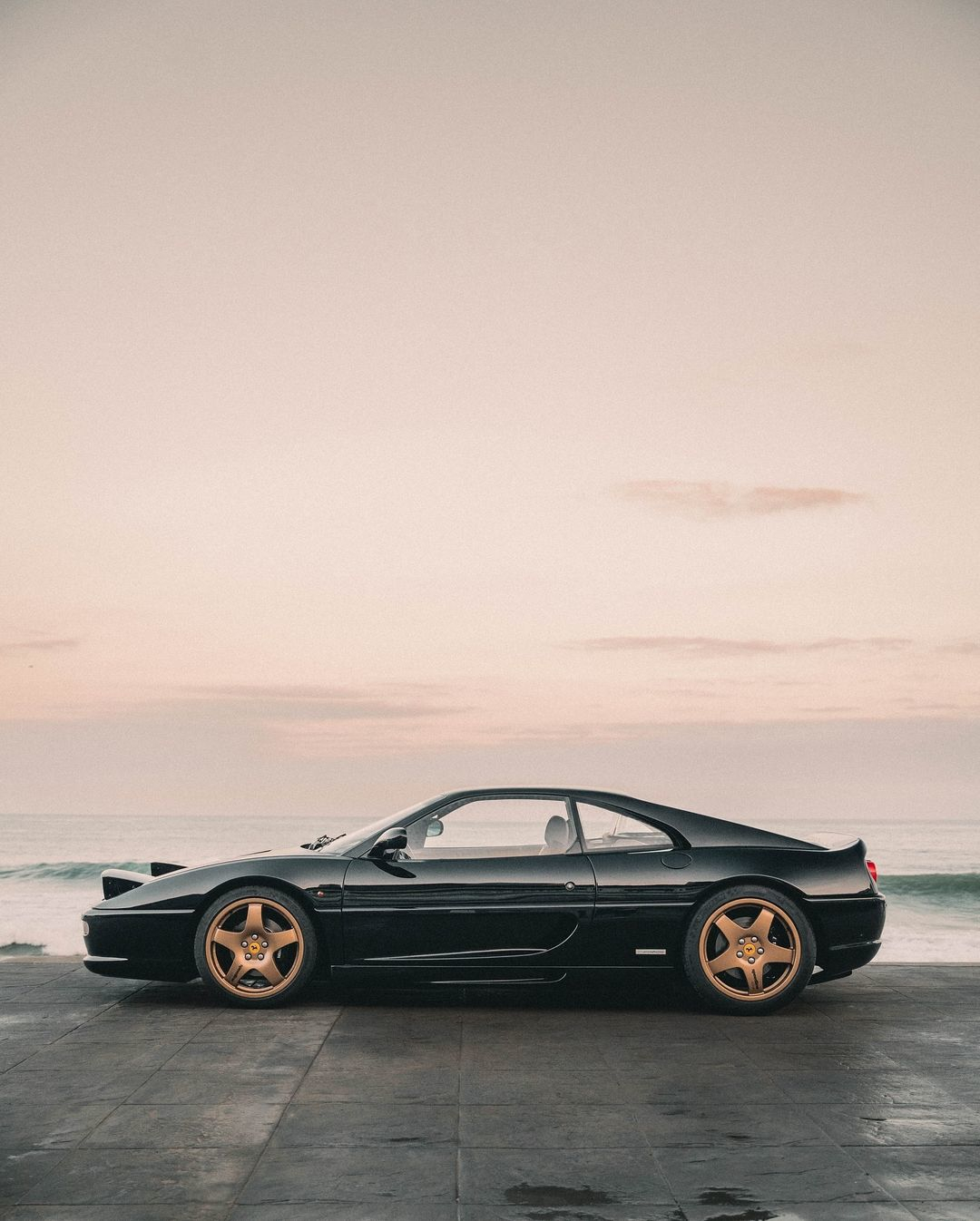 绝美的黑金 Ferrari F355夕阳余晖洒在车身上,勾勒出流畅的车身线条,翻