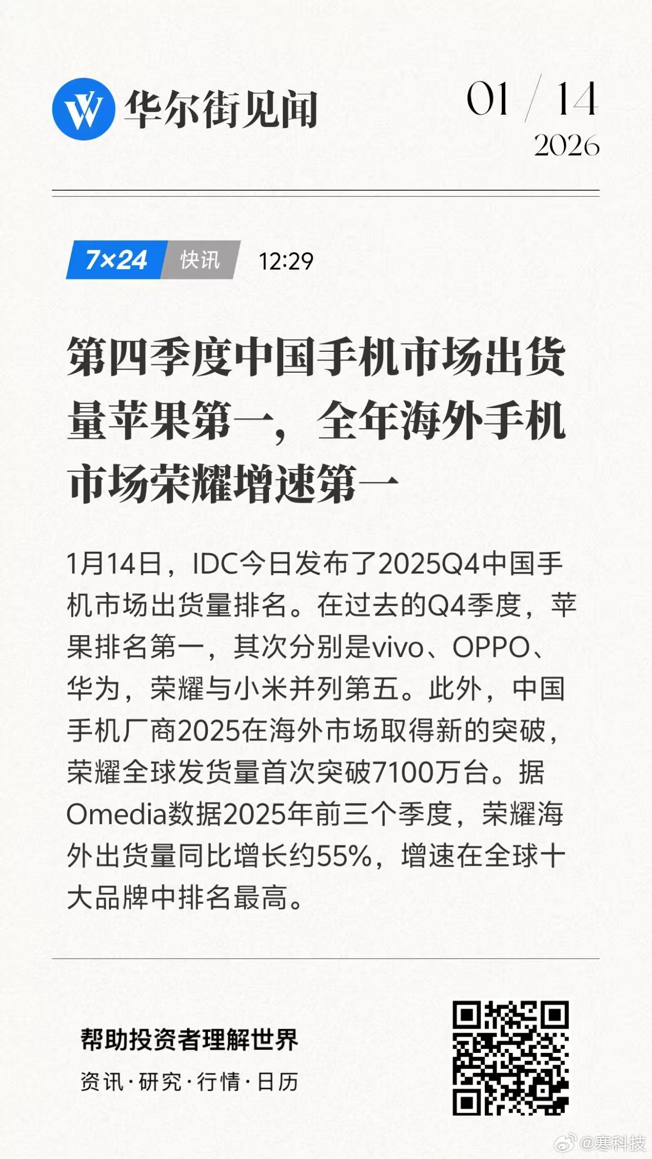 “据Omdia数据,截至2025年前三个季度,荣耀海外出货量同比增长约55%,荣耀的成长潜力也太强了,估计未来成为海外增速TOP1也是迟早的事。