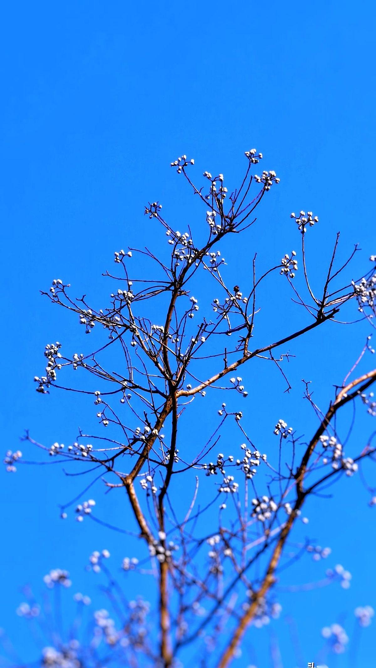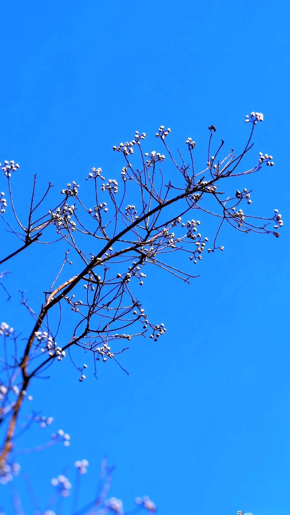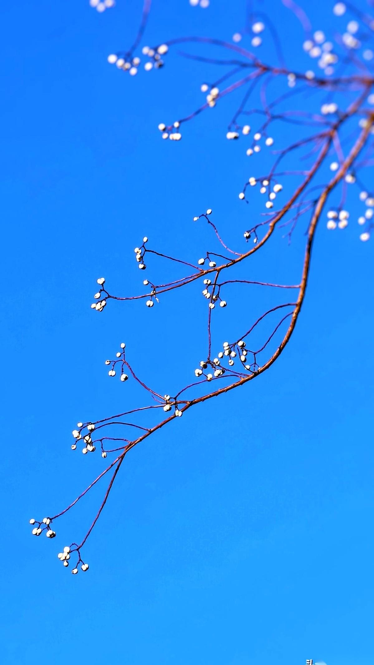 手机镜头刚对准那串乌桕子,一阵贼风就把它吹成了一团虚影。 我把手机揣回兜里暖手,跺了跺冻麻的脚。就不信了,今天非得把这张照片拍下来。 这天蓝得跟假的一样,没一丝云。那几颗白色的果子,就挂在细瘦的赭红色枝条上,干净得像P上去的。 可风不停。 我试了十几次。每次刚把画面框好,枝条就开始狂抖。屏幕里的画面,从一幅画瞬间变成一滩被搅浑的颜料。连对焦的绿框框都跟着乱跳,最后干脆消失了。 旁边扫落叶的大爷看了我一眼,摇摇头,继续哗啦哗啦地扫。 我换了个姿势,把身子蜷起来,用后背挡住一点风。手机举到眼前,屏幕冰凉,指尖已经没什么知觉了。 就是现在!风好像停了半秒。 世界瞬间安静,镜头里,那根最细的枝条稳住了,上面挂着的三颗白色乌桕子,每一颗的反光点都清晰可见,背景是那种没有尽头的、深邃的蓝。整个画面利索得像一把刀。 我屏住呼吸,指尖在快门上猛地一按。 成了。 有时候你费半天劲想要的,根本不是那张照片,就是要赢这么一下。