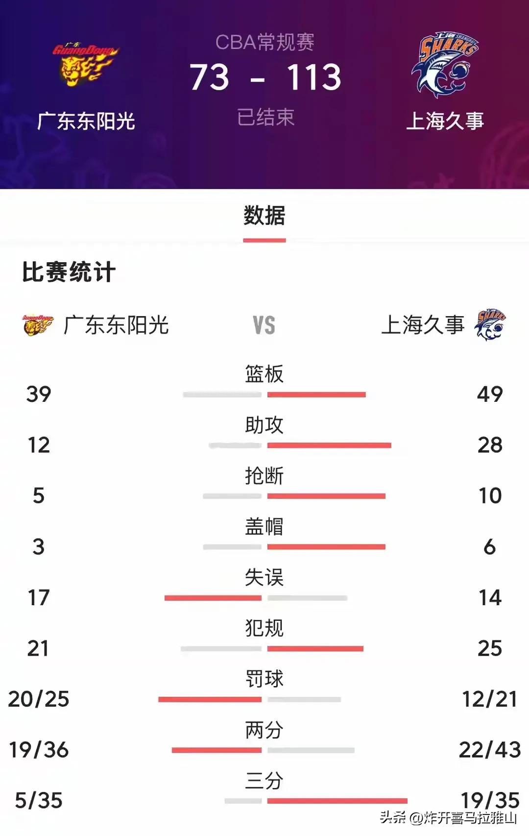 广东队惨败40分,赛后杜峰又甩锅输球又输人。杜峰接受采访时候把输球归纳为2方面。 一、球员思想放松,把比赛想简单了,因为此前洛夫顿没报名、就以为可以随便打,结果洛夫顿赛前决定出战且状态奇佳,广东男篮缺乏能量,开局就挖大坑。 二、对手防守强硬,广东男篮很多空位三分都投不进,心态发生变化。广东三分命中率14.3%,对手三分命中率却高达54.3%。 其实不是球员思想放松,是杜峰思想放松把比赛想简单了,以为上海队刚刚输给深圳队,自己又没费劲的赢过深圳队,就以为广东队主场能拿下上海队。还有杜峰说假话了,认为卢伟赛前不让洛夫顿上场,没有想法洛夫顿又上场了,很明显杜峰不知所措应对不足,这是杜峰准备不足,把输球的锅甩给广东队球员和上海队上不上外援实在是输球又输人,自己主打一个不粘锅,不过值得表扬的是杜峰没有怪年轻球员。