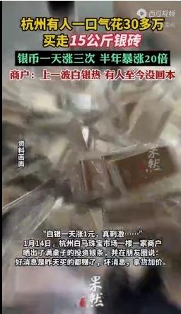 杭州白马珠宝市场惊现神秘买家!30万现金扛走15公斤银砖,银币半年暴涨20倍背后