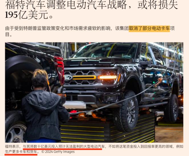 西方的产业自杀进入新阶段,在追逐短期利润的促使下,西方车企顽固地维系燃油车生产。 美国福特汽车宁可损失 195 亿美元,也要放弃大型电动车生产;欧盟计划取消 2035 年内燃机禁令,允许汽车制造商在禁令生效后继续生产一定数量的汽油和柴油汽车,而最初的禁令是迫使汽车制造商在 2035 年前将所有排放量降至零。 果然,当利益与道德产生分歧的时候,西方总是把利益放在首位。 福特的这一决策并非一时冲动,而是持续亏损后的无奈选择。 根据新华社报道,这家美国车企自 2023 年以来在电动汽车业务上已累计亏损 130 亿美元,2024 年一年就亏了 51 亿美元,2025 年的亏损还在扩大。 公司首席执行官吉姆・法利直言,继续向无法盈利的产品投入数十亿没有意义,所以他们选择终止全电动 F-150 Lightning 皮卡及 T3 皮卡等大型纯电项目,计提 195 亿美元资产减记,转而聚焦混合动力和增程式车型。 但电动车的研发和生产成本一直居高不下,加上美国市场对大型纯电车型的需求低于预期,再叠加特朗普政府收缩新能源政策,取消电动汽车税收减免,这些因素凑到一起,让福特的电动化之路难以为继。 原本为电动车业务规划的工厂,如今也要转产燃油卡车,相当于在电动化转型的路上来了个 180 度转弯。 欧盟的政策转向则更能说明这种短期利益导向已经成为西方产业的集体选择。 12 月 16 日欧盟委员会正式提案,把 2035 年新车零排放目标改成较 2021 年减排 90%,这意味着燃油车和混动车能保留 10% 的市场份额。 这一调整被业内称为近五年绿色政策最大退让,背后离不开德国、意大利等汽车制造大国的施压。 德国总理默茨公开表示欢迎,大众、宝马等车企更是齐声叫好,称单一路径转型不现实。 但这样的妥协并非没有代价,2025 年前十个月,欧盟新上牌的乘用车里,纯电动车占比只有 16.4%,离当初设定的目标差得很远,而瑞典动力电池企业北方伏特的破产,也让欧洲在电池核心环节的短板暴露无遗。 充电桩建设缓慢、电价高企,这些现实问题让消费者对电动车望而却步,也给了车企游说政策放宽的理由。 西方车企对燃油车的执念,本质上是对短期利润的依赖。 德国汽车业在传统内燃机领域积累了深厚的技术优势,相关产业链能提供大量就业岗位,仅德国汽车业 2025 年上半年就净减 5.15 万个岗位,继续生产燃油车能直接缓解就业压力和利润下滑的焦虑。 大众、梅赛德斯 - 奔驰等车企 2025 年前三季度利润都在下滑,在电动车还没找到稳定盈利模式的情况下,回归熟悉的燃油车业务成了最稳妥的选择。 欧盟新提案里还藏着对本土产业的保护,对车长不超过 4.2 米且在欧盟完成组装的小型电动车给予 1.3 倍碳排放积分奖励,试图扶持雷诺 5 这类本土车型,但这种带有保护主义的政策,反而可能延缓整个产业的转型节奏。 然而这种看似务实的选择,正在透支西方汽车产业的未来。 全球电动化转型已是大势所趋,中国和日韩车企都在加速布局电动车市场,欧洲的政策摇摆会让投资者产生不确定性。 欧洲倡议组织 “欧洲电动出行” 秘书长就直言,部分车企已投入数千亿欧元,政策放宽可能导致投资延迟。 西班牙和法国的反对态度也能说明问题,西班牙首相桑切斯致信欧盟委员会,警告任何放松限制都会导致现代化投资延迟,影响欧洲汽车行业的全球竞争力。 法国也坚持认为,保留燃油车会让欧盟 2050 年碳中和目标落空,这些反对声音恰恰点出了短期利益与长期发展的矛盾。 美国市场的情况同样不容乐观,福特的战略调整虽然能暂时止损,但也意味着在大型电动车领域彻底放弃竞争。 特朗普政府的新能源政策收缩,让美国电动车市场失去了政策红利,消费者需求下滑已成定局。 福特把希望寄托在混合动力和增程式车型上,可这些过渡性技术在纯电技术快速迭代的今天,能维持多久的竞争力还是个未知数。 更值得注意的是,电池产能过剩和技术短板已经成为西方车企的共同难题,福特承认大型电动车型走入死胡同,本质上是在核心技术领域缺乏突破的无奈。 其实西方车企并非看不到电动化的必然趋势,只是短期利润的诱惑和转型阵痛的压力,让他们选择了最省力的路径。 德国车企依赖传统燃油车产业链,欧盟受制于成员国利益博弈,美国车企被市场亏损和政策变化左右,这些因素交织在一起,形成了阻碍转型的合力。 但全球汽车市场的竞争不会等待,当中国车企凭借完整的产业链和成熟的技术占据更多市场份额,当消费者对电动车的接受度越来越高,西方车企可能会发现,他们为短期利益放弃的,是未来十年的市场主导权。