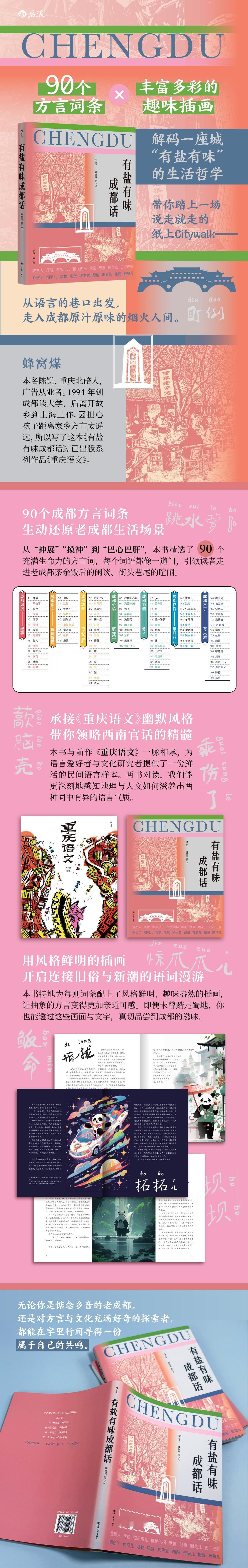 我的书适圈 ‼玩转成都方言——《有盐有味成都话》📖90个方言词条×丰富多彩的趣味插画解码一座城“有盐有味”的生活哲学~💥本书收录了90个具有代表性的成都方言词汇,配以风格鲜明的漫画插图,在向读者讲解方言词汇意涵的同时,也从中展示西南地区人民的生活日常和性格特征,带你踏上一场说走就走的纸上Citywalk——🍲从语言的巷口出发,走入成都原汁原味的烟火人间,和松弛成都人一起“巴适”起来!