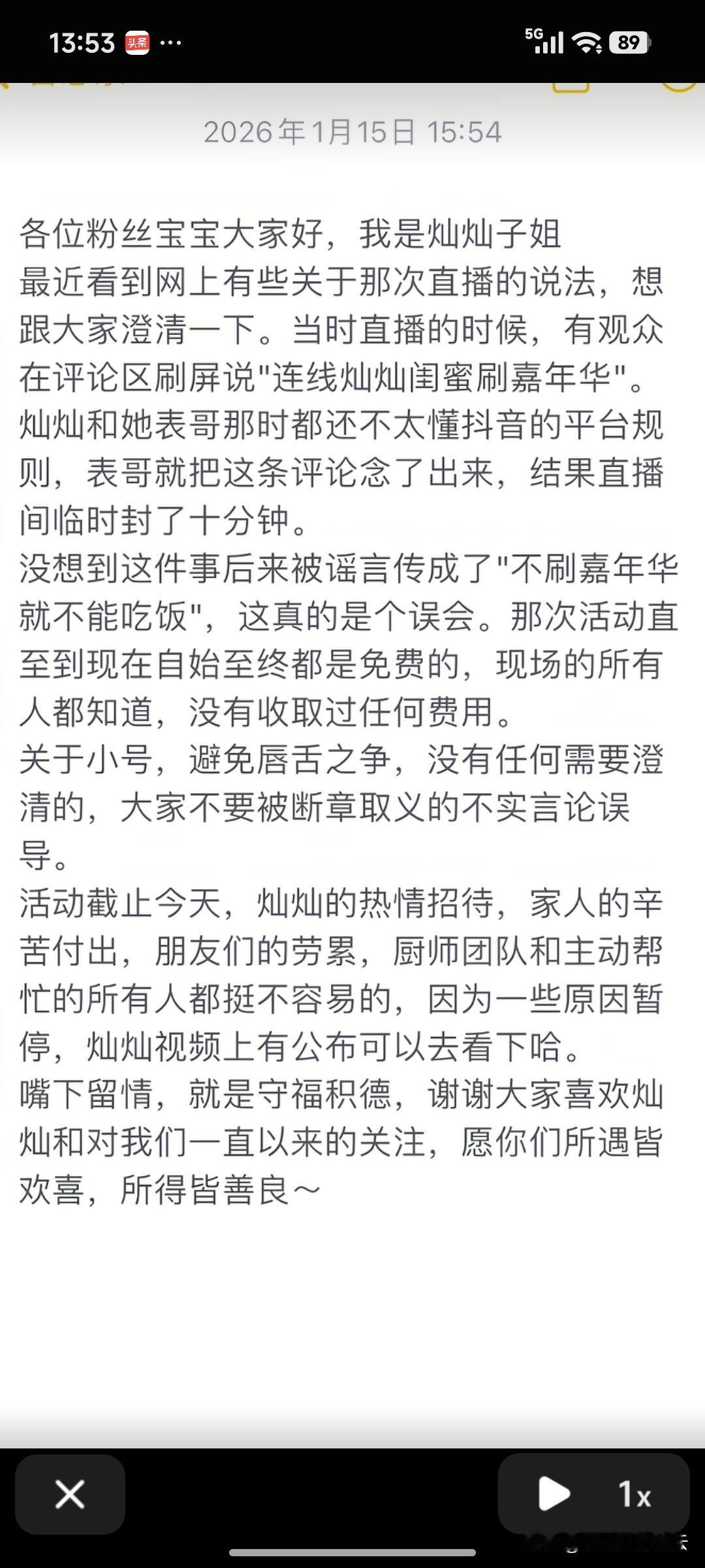 灿灿姐姐出来回应灿灿直播间被封,说是场误会。因为当时直播间有个网友说“灿灿闺蜜露面就会刷嘉年华。”表哥不懂直播的规则,把这句话读出来了,所以导致直播间被封了十分钟。也不是一直被封。 后来传来传去,就成了灿灿要嘉年华直播间被封,其实灿灿很冤枉。 这件事是澄清了,不过这个事很多人都知道了。对于大家关心的灿灿小号的问题,姐姐却含糊其辞,说是没必要澄清,她说不澄清是为了避免口舌之争。 但是我觉得你都不澄清,那不是更让人误会,引起口舌吗?是没必要,还是不敢回应呢?
