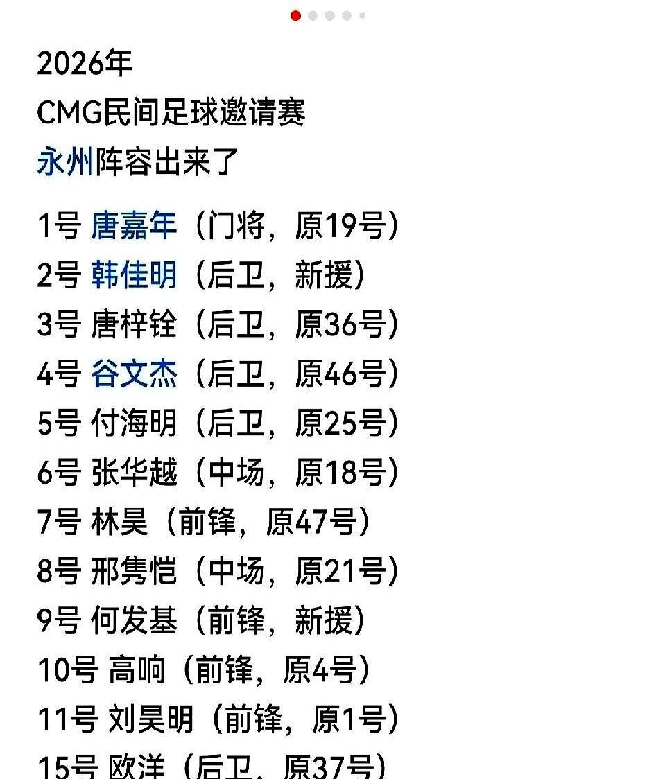 高响的10号,和谷文杰接手的那件4号,到底哪件球衣更沉? 永州队更衣室里静悄悄的。上赛季MVP高响脱下穿了一年的4号,直接披上了象征灵魂的10号。 他留下的那件4号,递给了谷文杰。就是那个决赛用头球绝杀的46号“带刀后卫”,这哥们一下从替补号码穿上了主力后防的核心战袍! 这背后,是几个高中生主力刚离队去长沙备战高考,衣柜都空了…… 旁边,老将张涛的27号没变,他就安安静静叠好衣服。新来的2号韩佳明和9号何发基也领到了自己的新装备。 这一下,永州队1到11号主力号码头一次被安排得明明白白,从“青春风暴”正式成了卫冕军。 高响成了进攻核心,谷文杰成了后防新支柱。你觉得,新赛季谁的压力更大?