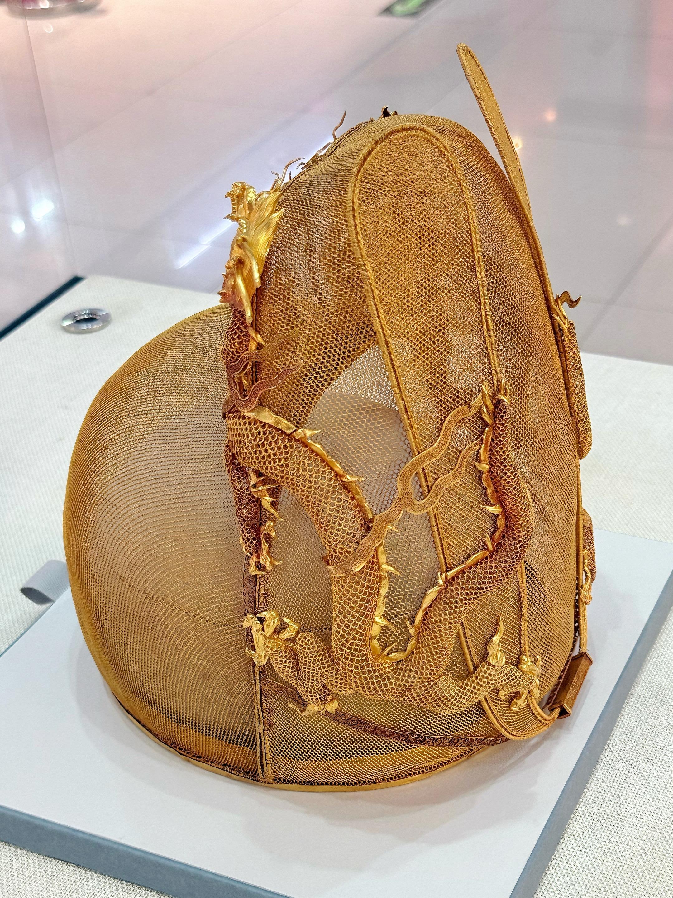 谁懂第一眼见到金丝善翼冠的震撼!大明王朝万历皇帝的金丝翼善冠,国内现存仅有的一件帝王金冠!用852根直径仅0.2毫米的金丝,经掐丝、累丝、码丝、焊接等多种工序纯手工打造而成,仅龙鳞就有8400片,你看不到任何接头和断丝的痕迹!中国顶奢还是太权威了….