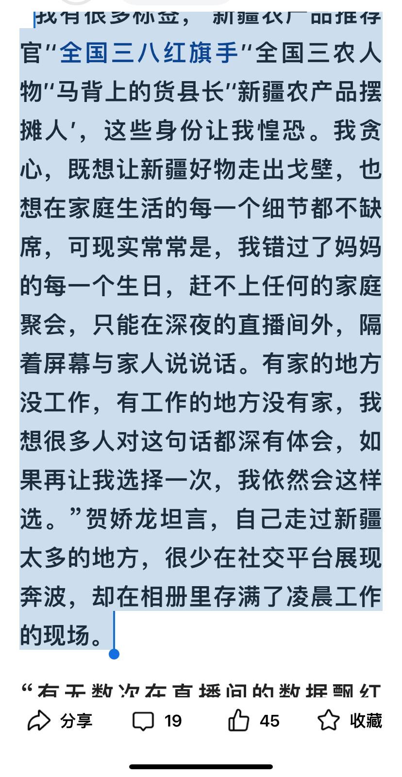 贺娇龙今天与爸爸团聚了,妈妈是贺娇龙最牵挂也是她觉得最亏欠的人 贺娇龙直播时说过:“我贪心,既想让新疆的好物走出戈壁,也想在家庭生活的每一个细节都不缺席,可现实却是我既错过了妈妈的每一个生日,也赶不上任何一个家庭聚会,只能在深夜的直播间外,隔着屏幕与家里人悄悄打个电话,有家的地方没有工作,有工作的地方没有家,我满心愧疚,因为我不是好女儿,但她特别理解我,也知道我能走到今天很不容易。过几年退休了,我只想回到昭苏,永远的陪着我的家人。”今天,你回来了,是的,你再也不会离开了……你和爸爸团队聚去了 一位网友评论:当意外坠马的瞬间,最飒文旅局长、全国三八红旗手等等的所有身份都归于零,只剩下47岁的脆弱肉身,在物理铁律面前无力抗衡 。她曾多次从马背上摔下,却总为了推广家乡一次次重返马鞍,我们歌颂这份奉献,但也无法无视冰冷的物理现实从不对英雄格外宽容,才华与地位换不来0.01秒的缓冲。我们致敬她用流量照亮边疆的赤诚,更心疼这份坚守背后未被珍视的肉身。 贺娇龙真的是太拼了,为宣传新疆她策马雪原,她还坐吊床升到百万亩胡杨林上空一百米,她也是胆子大啊!一般人看这么高都得腿软,她本来可以在花田里,在果树下,在直播间说一说,但是她选择了最勇敢的方式[流泪]她竟然敢坐上去,也许是有点过于拼了吧,但也多少说明她是真的很爱自己的家乡,很爱自己在做的事情。如果不是出于热爱,又怎会如此拼…… 如果可以重来,多希望她能“自私”一点,少一次冒险的拍摄,多一份对自己的眷顾,多陪陪妈妈和家人 愿天山的风记得她的温柔,草原的花承载她的心愿,也愿每个为生活奔忙的人,都能读懂肉体的脆弱,在坚守与珍重之间,找到温柔的平衡。 “她是‘网红’,却把‘流量’都留给了新疆,富了农村和农民”“凭一己之力拉动新疆文旅和农产品推广”。为了直播带货,她常年零娱乐、零社交,不断奔波于直播助农的乡间工厂,成为新疆优质农产品的“代言人”和“推荐官”。党的好干部人民公仆[合十][玫瑰] 那份身披斗篷策马雪原的飒爽,是她为新疆文旅奔走的赤诚;那些公益助农的日夜,是她对这片土地最深厚的热忱。166万平方公里的新疆大地,见证了她扎根边疆、助力乡村振兴的坚守! 那个为了家乡拼尽全力的贺娇龙书记,就这样离开了。她不是荧幕上的网红,而是真真切切为地方发展付出的实干者,从策马代言到奔走推广,每一步都透着对家乡的热爱。47岁的她,本还能为昭苏做更多事,却因意外戛然而止,何其痛心。惟愿天堂温柔以待,也希望她的这份初心,能被更多人传承。贺娇龙 贺娇龙坠马