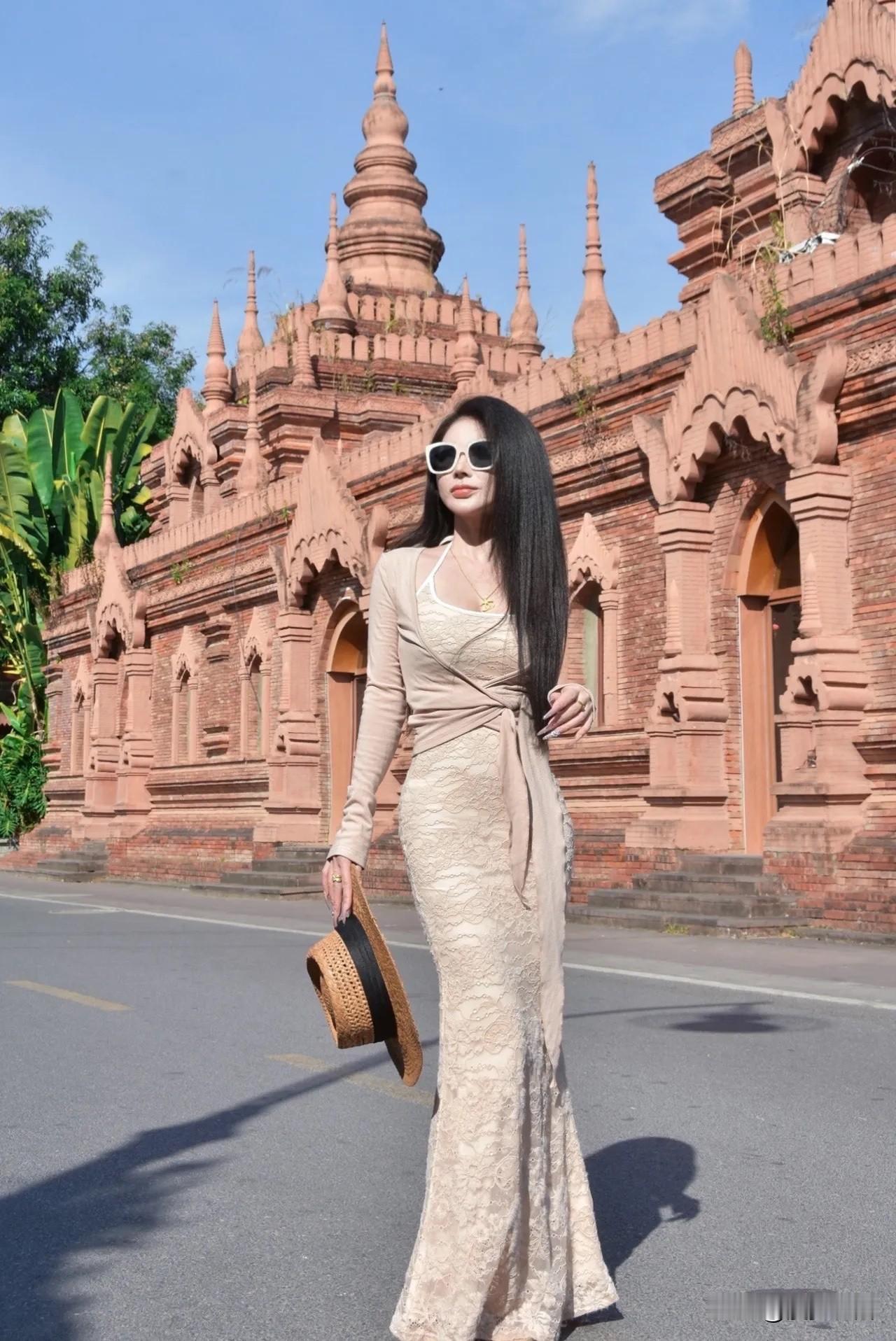 米白色蕾丝长裙 被热带的风轻轻托着 滑过傣寨的晨光 纹路里织满湄公河的波纹 一路漫过佛塔金顶 第一缕阳光撞在金塔上 碎成满池粼粼星子 石桥上的赤足 踩着龙首雕塑投下的影子 在水面游成一条沉默的鱼 草帽扣住掌心温度 墨镜滤掉喧嚣 只留睫毛上跳跃的光斑 和项链坠子轻叩锁骨的节奏 红砖城墙是时光烧红的信笺 每道砖缝都藏着南传佛教的偈语 开衫的结系成温柔谜面 长裙拖过柏油路 像拖曳着一整个夏天的云朵 风穿过廊檐风铃 叮当作响 远处的象脚鼓 正与心跳踩着同一节拍 在告庄的午后 蕾丝与砖红 草帽与佛塔 所有柔软与坚硬 都在热带阳光下 完成一场无声的相拥 图片来自网络,侵删