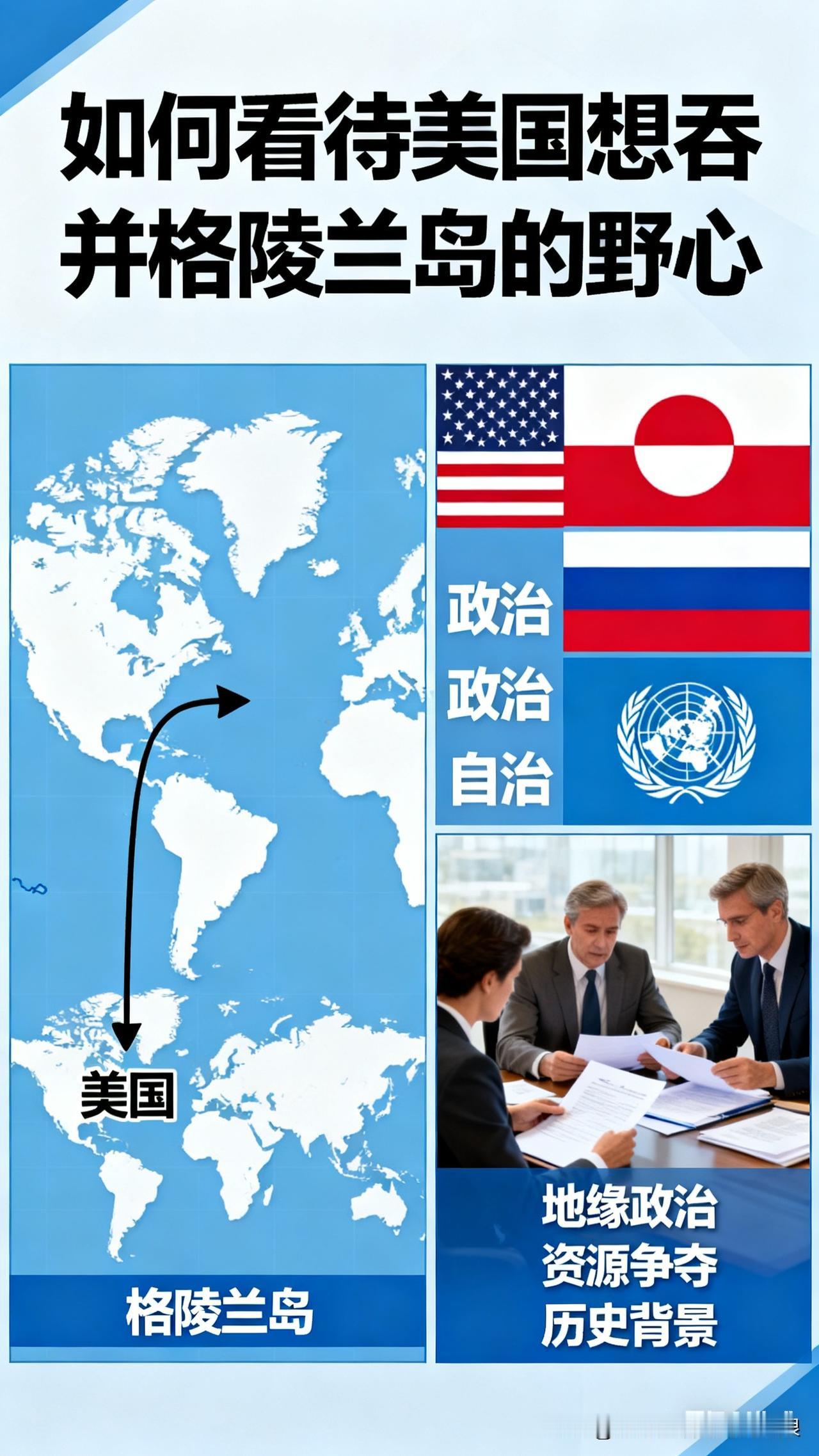 这个岛大得离谱、位置又关键,北极航道、资源、军事价值全占了,美国自然想牢牢抓在手里。 但吞并?基本不可能。 格陵兰不是商品,人家有自己的政府和民意,丹麦也不会答应,国际法更不允许。 美国真正想做的,是通过驻军、投资、资源合作,一点点扩大影响力,把格陵兰变成自己在北极的“前哨站”。 说白了,就是想控制,不想尊重。 这种做法只会让更多国家看清:美国的规则,就是“我要的都得是我的”。 世界不是美国一家的,霸权逻辑早就该过时了。 美国占格陵兰岛 格陵兰岛现状 格陵兰地缘战略 格陵兰地位 格陵兰主权 格陵兰岛问题 格陵兰岛计划 夺取格陵兰岛 图片由AI生成