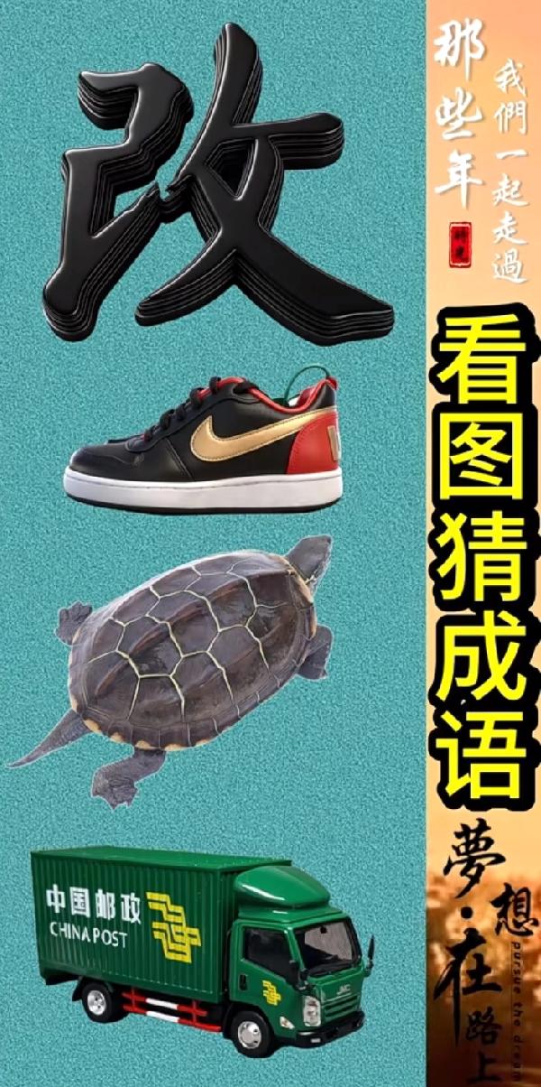 改+鞋+龟+邮政车,你能想到哪个成语?