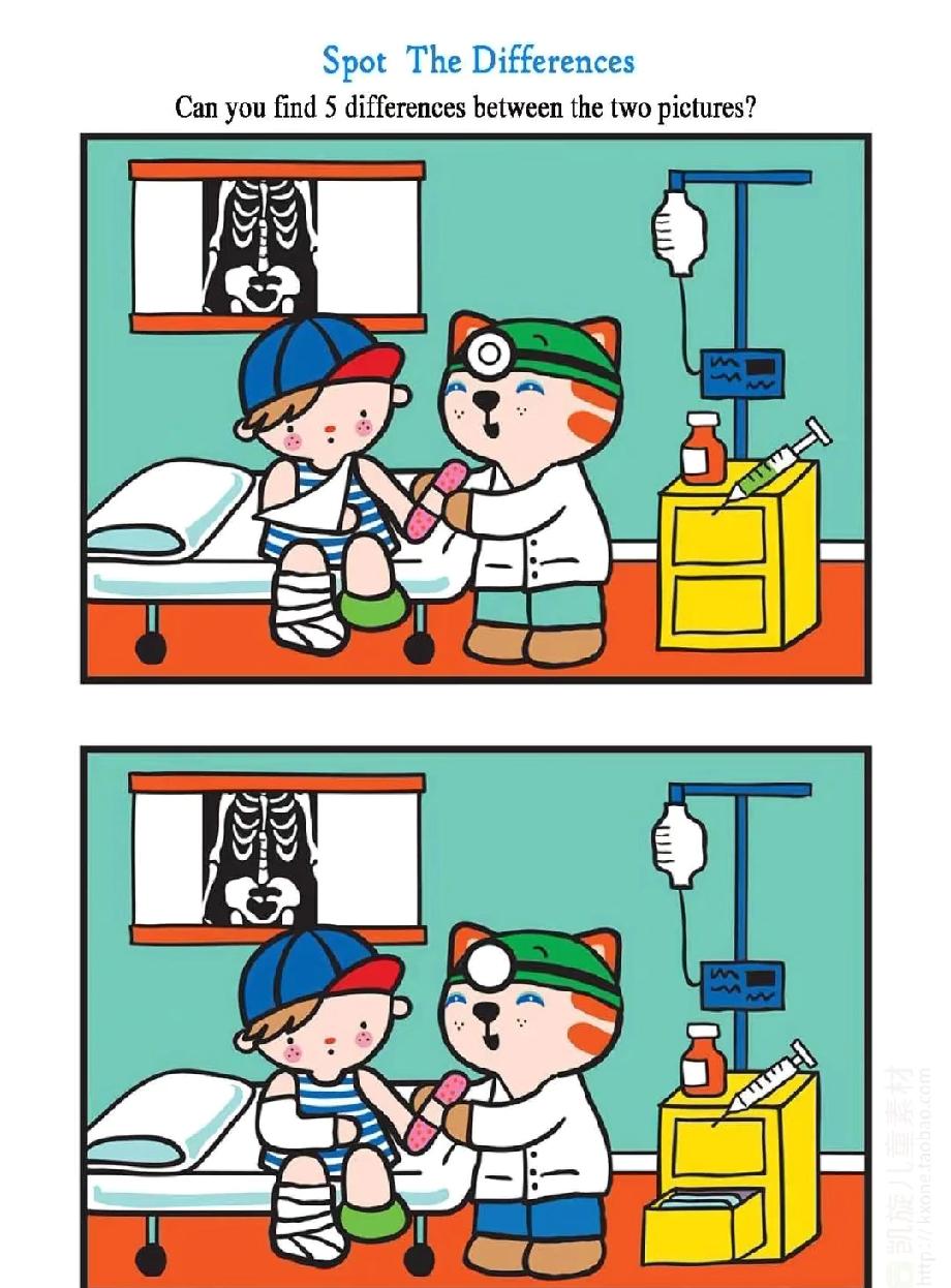 医院场景里的5处不同,90%的人找不全,你敢来试试吗?